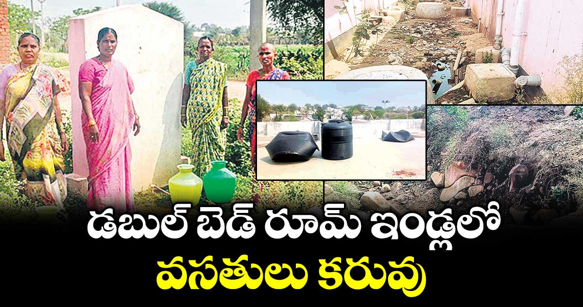- డబుల్ బెడ్ రూమ్ ఇండ్లల్లో అటాచ్డ్ బాత్ రూమ్, లెట్రిన్లను నిర్మించారు. కుళాయిలు కూడా ఫిట్ చేశారు. కానీ నీటి వసతి కల్పించలేదు. దీంతో అటాచ్డ్ బాత్ రూమ్స్ను కొందరు స్నానాలకు, మరికొందరు సామాన్లు భద్రపర్చుకునేందుకు వినియోగిస్తున్నారు. ఇక బహిర్భూమికి మహిళలు, పురుషులు సమీపంలో ఉండే వ్యవసాయ పొలాల్లోకే వెళ్తున్నారు.