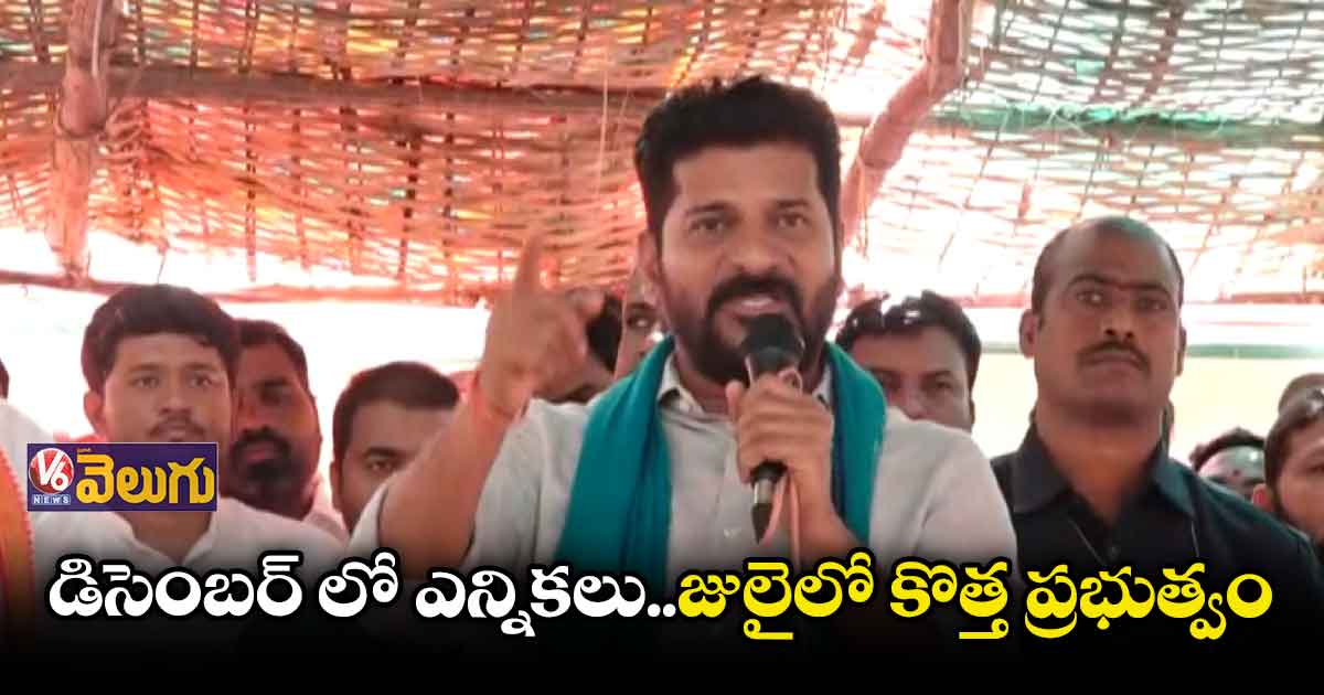 రాష్ట్రంలో డిసెంబర్ లో ఎన్నికలోస్తాయన్నారు టీపీసీసీ చీప్ రేవంత్ రెడ్డి. జూన్, జులైలో కొత్త ప్రభుత్వం వస్తుందని... అది కూడా కాంగ్రెస్ పార్టీయేనని ధీమా వ్యక్తం చేశారు. వికారాబాద్ జిల్లాలోని పరిగిలో కాంగ్రెస్ పార్టీ డిజిటల్ మెంబర్షిప్ డిజిటల్ కార్డుల ఆవిష్కరణ సభలో పాల్గొన్నారు రేవంత్. పేద బడుగు బలహీన వర్గాల ప్రజలు, ఉద్యమకారులు బాగుపడాలంటే అది కేవలం కాంగ్రెస్ ప్రభుత్వంతోనే సాధ్యమని అన్నారు.