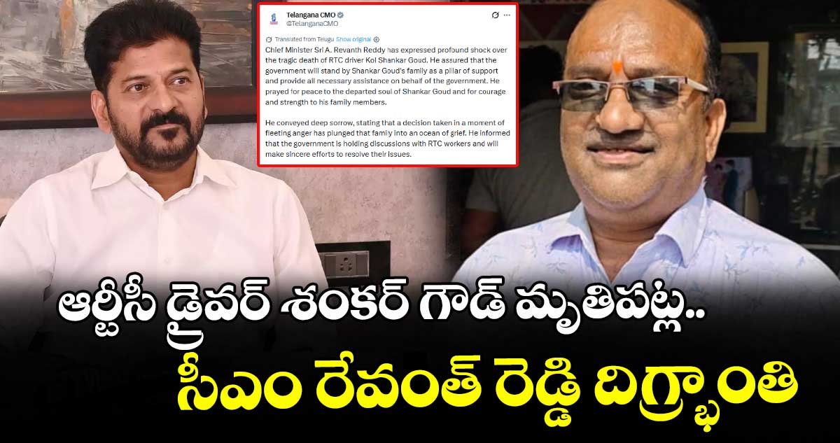 మరోవైపు ఆర్టీసీ డ్రైవర్ శంకర్ గౌడ్ మృతి పట్ల రాష్ట్ర రవాణా శాఖ మంత్రి పొన్నం ప్రభాకర్ విచారం వ్యక్తం చేశారు. శంకర్ గౌడ్ కుటుంబానికి ప్రభుత్వం అండగా ఉంటుందని హామీ ఇచ్చారు.శంకర్ గౌడ్ ఆత్మకు శాంతి చేకూరాలని, కుటుంబ సభ్యులకు మనోధైర్యాన్ని ప్రసాదించాలని ప్రార్థించారు. ఆర్టీసీ కార్మికులు ఆందోళన చెందవద్దని క్షణికావేశంలో ఎలాంటి నిర్ణయాలు తీసుకోవద్దని విజ్ఞప్తి చేశారు.
