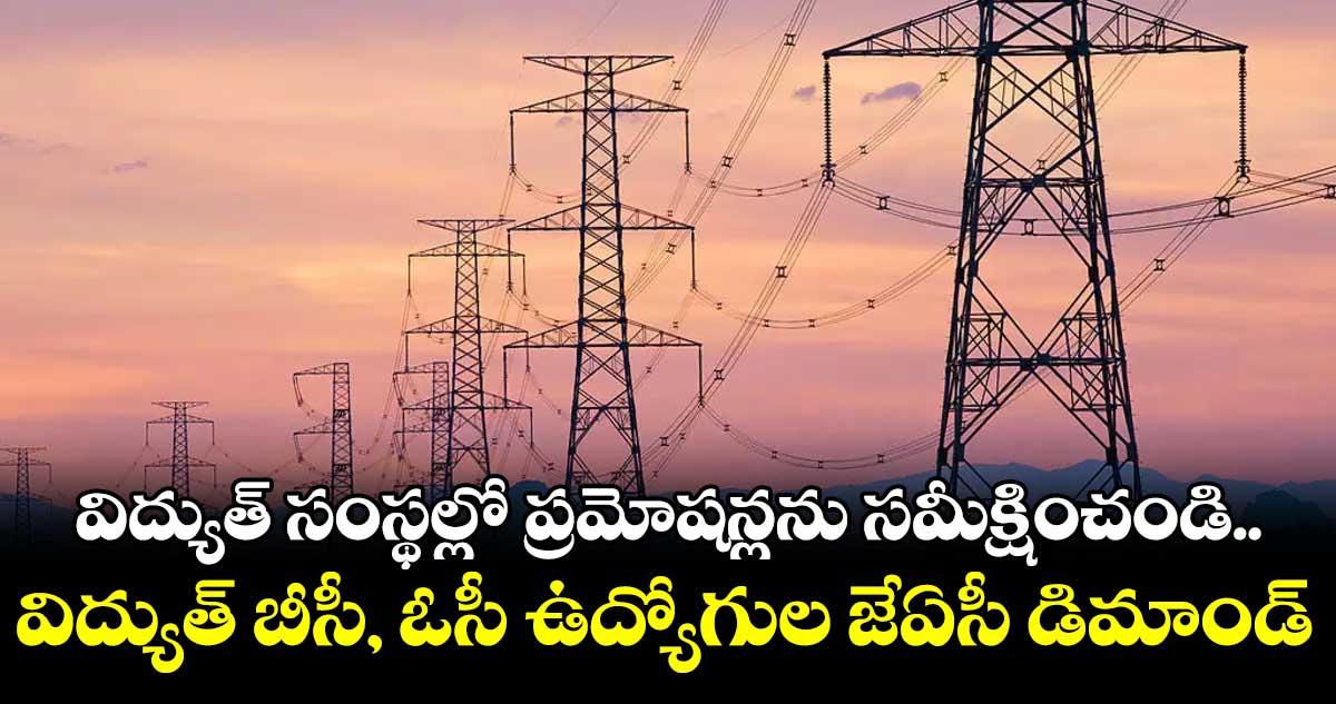 హైదరాబాద్, వెలుగు: రాష్ట్రంలోని విద్యుత్ సంస్థల్లో ప్రమోషన్లను సమీక్షించాలని తెలంగాణ విద్యుత్ బీసీ, ఓసీ ఉద్యోగుల ఐక్య కార్యాచరణ సమితి డిమాండ్ చేసింది. శుక్రవారం విద్యుత్ బీసీ, ఓసీ ఉద్యోగుల జేఏసీ నేతలు విద్యుత్ సౌధలో ట్రాన్స్కో, జెన్కో సీఎండీ దేవులపల్లి ప్రభాకర్ రావును కలిసి వినతి పత్రాన్ని అందజేశారు. ఈ సందర్భంగా జేఏసీ చైర్మన్ కుమారస్వామి మాట్లాడుతూ.. రాష్ట్ర ఆవిర్భావం తర్వాత ట్రాన్స్కో, జెన్కో, ఎస్పీడీసీఎల్, ఎన్పీడీసీఎల్ విద్యుత్ సంస్థల్లో కల్పించిన ప్రమోషన్లను హైకోర్టు ఉత్తర్వుల మేరకు సమీక్షించాలని తెలిపారు. తద్వారా ఉద్యోగులకు ప్రమోషన్లు ఇవ్వాలని కోరారు. దీనిపై సీఎండీ దేవులపల్లి ప్రభాకర్ రావు సానుకూలంగా స్పందించారు.