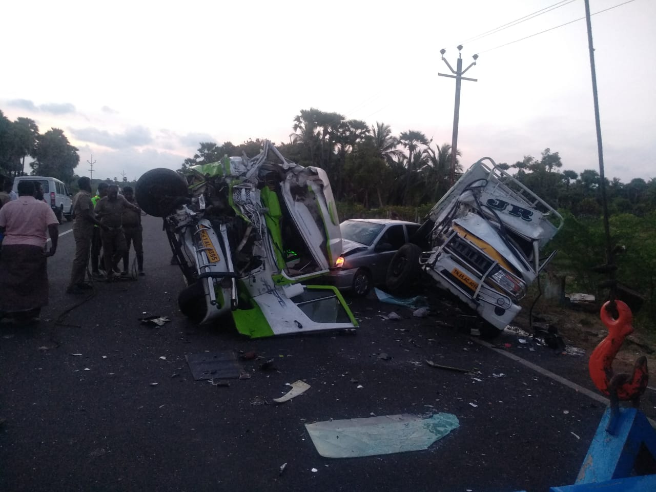 తమిళనాడులో ఘోర రోడ్డు ప్రమాదం జరిగింది. రామనాథపురం జిల్లా ఊచిపులి దగ్గర యాక్సిడెంట్ అయింది. మూడు వాహనాలు ఒకదానికొకటి వేగంగా గుద్దుకున్నాయి. ఈ ఘోర ప్రమాదంలో… ఇద్దరు అక్కడికక్కడే చనిపోయారు. మరో నలుగురి పరిస్థితి సీరియస్ గా ఉంది. మూడు వాహనాల్లో ప్రయాణిస్తున్న 21 మంది గాయపడ్డారు.