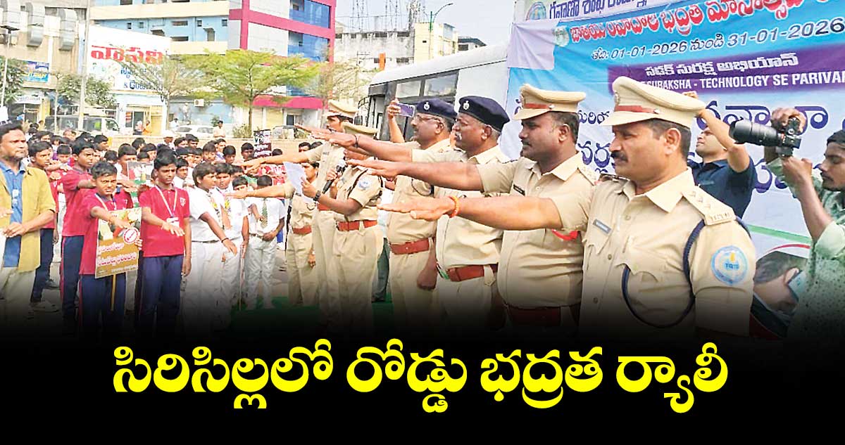 రాజన్న సిరిసిల్ల: రోడ్డు భద్రత అందరి భాద్యత అని రాజన్నసిరిసిల్ల అడిషనల్ ఎస్పీ చంద్రయ్య అన్నారు. జాతీయ రోడ్డు భద్రత మాసోత్సవాల సందర్భంగా సిరిసిల్లలో విద్యార్థులతో కలిసి ఆర్టీఏ ఆఫీసర్లు ర్యాలీ నిర్వహించారు. ఈ సందర్భంగా ఏఎస్పీ మాట్లాడుతూ యువత జాగ్రత్తగా డ్రైవింగ్ చేయాలన్నారు. అనంతరం విద్యార్థులతో ప్రతిజ్ఞ చేయించారు. ఓవర్ స్పీడ్, డ్రింక్ చేసి వాహనం నడపడం చట్టరీత్యా నేరమన్నారు. ర్యాలీలో ఆర్టీవో లక్ష్మణ్, డీఎస్పీ నాగేంద్ర చారి, సీఐ కృష్ణ పాల్గొన్నారు.