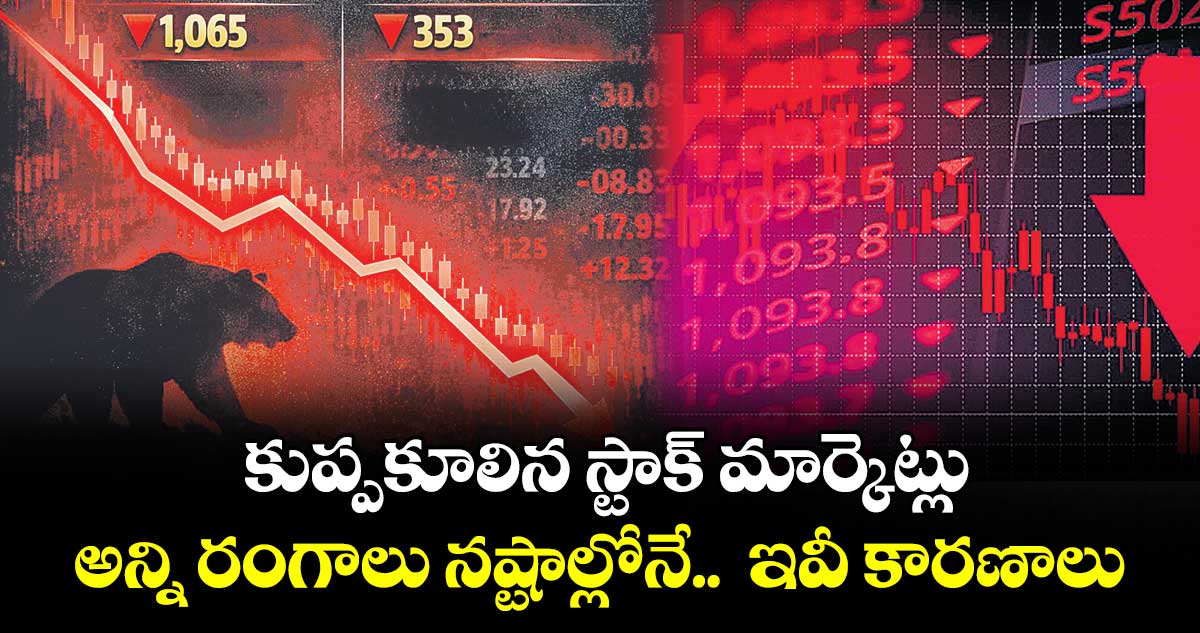 హైదరాబాద్, వెలుగు: మన స్టాక్ మార్కెట్లు కుప్పకూలాయి. జియో పొలిటికల్ టెన్షన్స్, టారిఫ్ వార్ భయాలు, ఎఫ్ఐఐల అమ్మకాలతో భారీగా నష్టపోయాయి. ఇన్వెస్టర్ల సంపద మంగళవారం ఒక్కరోజే దాదాపు రూ.10 లక్షల కోట్లు ఆవిరైంది. గత రెండు రోజుల్లో రూ.12 లక్షల కోట్లు తగ్గింది. మార్కెట్లో లార్జ్, మిడ్, స్మాల్ క్యాప్ ఇండెక్స్లన్నీ పడ్డాయి. అన్ని రంగాలూ నష్టపోగా.. ఐటీ, బ్యాంకింగ్, రియాల్టీ సెక్టార్లు ఎక్కువగా నష్టాలను నమోదు చేశాయి. దీంతో మన మార్కెట్ ఇండెక్స్లు అయిన సెన్సెక్స్, నిఫ్టీ రెండు నెలల కనిష్టానికి చేరాయి. సెన్సెక్స్ 1,065 పాయింట్లు నష్టపోయి 82,180 వద్ద ముగిసింది. నిఫ్టీ 353 పాయింట్లు తగ్గి 25,232 వద్ద స్థిరపడింది. ఒకానొక దశలో సెన్సెక్స్ 1,200 పాయింట్లకు పైగా, నిఫ్టీ దాదాపు 400 పాయింట్లు పడిపోయాయి.