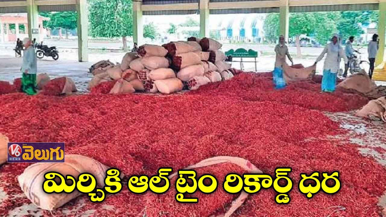 వరంగల్: వరంగల్ ఏనుమాముల మార్కెట్ లో మిర్చికి రికార్డ్ ధర పలికింది. గత రికార్డులను తిరగరాస్తూ… ఆల్ టైం రికార్డ్ ధర పలికింది. దేశీ రకం మిర్చికి ఏనుమాముల మార్కెట్ లో క్వింటాల్ కు రూ. 44,000 ధర పలికింది. జయశంకర్ భూపాలపల్లి జిల్లాకు చెందిన రైతు నాగేశ్వర్ రావు తీసుకువచ్చిన దేశీరకం మిర్చిని జితిన్ ట్రేడింగ్ కంపెనీ క్వింటాల్ రూ. 44 వేలు చెల్లించి కొనుగోలు చేసింది. కొద్ది రోజుల క్రితం మిర్చి క్వింటాల్ రూ.37 వేలు పలుకగా... ఇప్పుడు ధర మరింత పెరగడంతో మిర్చి రైతులు పండగ చేసుకుంటున్నారు. కాగా.. పత్తికి కూడా రికార్డ్ ధర పలుకుతోంది. క్వింటాల్ పత్తి ధర రూ. 10,500 పైనే పలుకుతోంది.