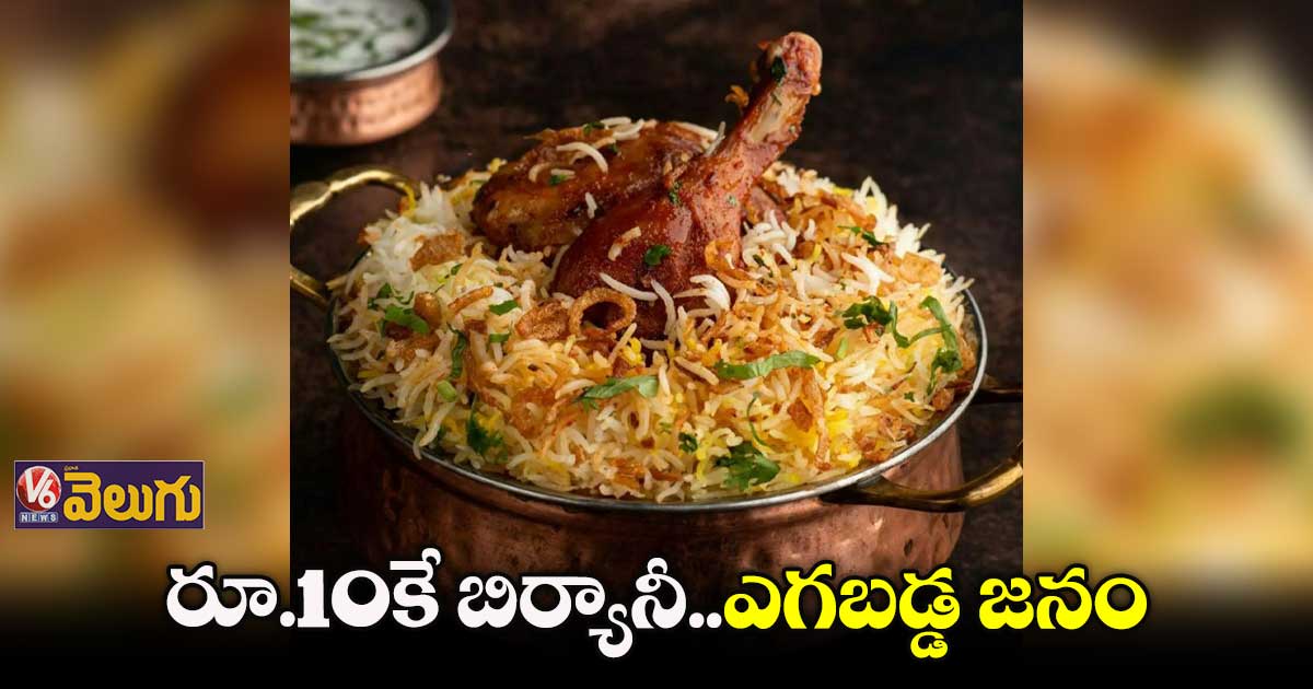పది రూపాయలకే దమ్ బిర్యానీ ఇస్తామంటూ ఓ హోటల్ యజమాని ప్రకటించాడు..ఇంకేముంది వెంటనే జనం పది రూపాయలతో బిర్యానీ కోసం హోటల్ పై ఎగబడ్డారు. ఖమ్మం నగరంలోని ముస్తఫా నగర్ ప్రాంతంలో నూతనంగా బిర్యానీ పాయింట్ ఏర్పాటు చేశారు. ఈ సందర్భంగా హోటల్ యజమాని పబ్లిసిటీ కోసం పది రూపాయలకే బిర్యానీ అంటూ ప్రకటించాడు.