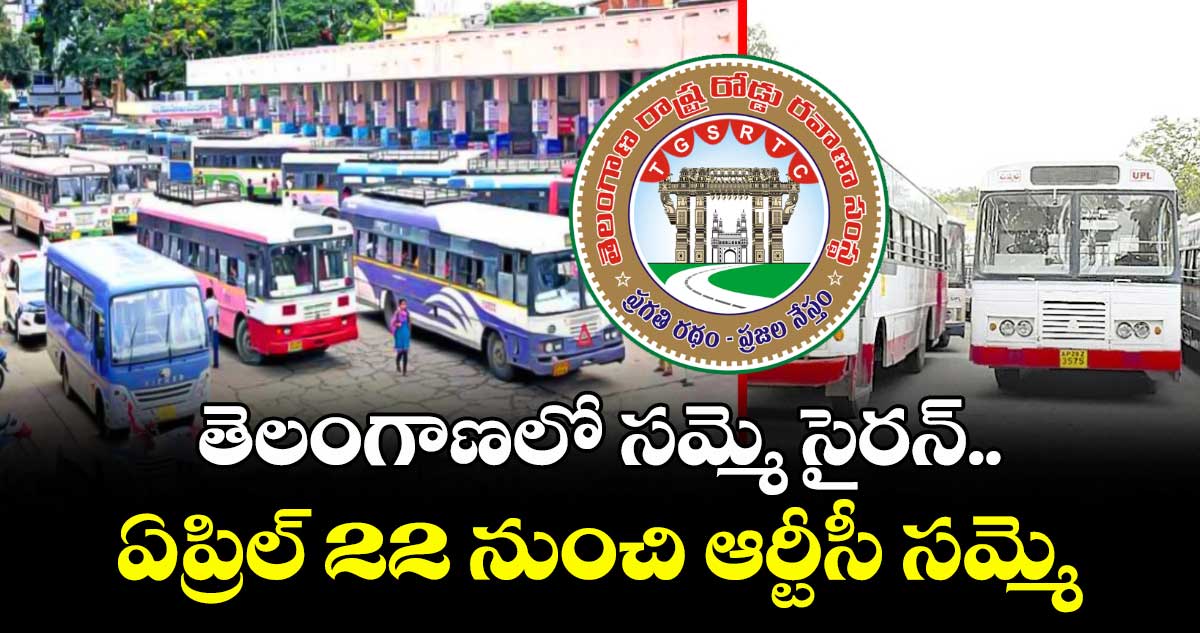 తెలంగాణలో సమ్మె సైరన్ మోగింది. ఏప్రిల్ 22 నుంచి సమ్మె చేస్తున్నట్టు టీజీఎస్ ఆర్టీసీ జేఏసీ ప్రకటించింది. న్యాయమైన డిమాండ్ల సాధన కోసం మార్చి 13నే సమ్మె నోటీసు ఇచ్చినా.. ప్రభుత్వం నుంచి ఎలాంటి స్పందన లేదని తెలిపింది. ఏప్రిల్ 21 అర్ధరాత్రి.. అంటే మొదటి డ్యూటీ నుంచే రాష్ట్రవ్యాప్తంగా సమ్మెకు దిగుతున్నట్లు వెల్లడించింది. ఈ జేఏసీ వెనుక 40 వేల మంది కార్మికుల బలం ఉందని చెప్పారు జేఏసీ నేతలు. కార్మికులంతా ఏకతాటిపై ఉన్నారని... విభజించు పాలించు అనే ధోరణి ప్రదర్శిస్తే సహించేది లేదన్నారు. తమ సమస్యలు పరిష్కరించే వరకు వెనక్కి తగ్గేదే లేదన్నారు.