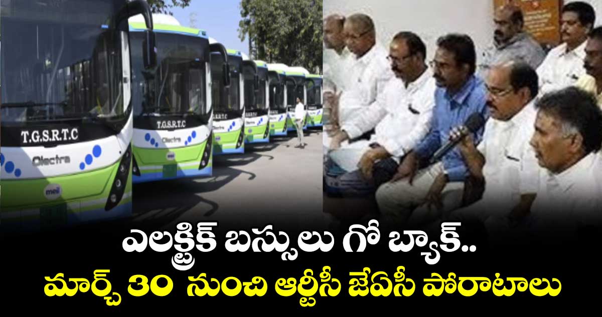 హైదరాబాద్, వెలుగు: ఎలక్ట్రిక్ బస్సులకు వ్యతిరేకంగా తెలంగాణలో తమ పోరాటాలను ఉధృతం చేసేందుకు ఆర్టీసీ జేఏసీ దశల వారీ ఉద్యమాలకు సిద్ధమవుతోంది. ఇందులో భాగంగానే ‘‘ఎలక్ట్రిక్ బస్సులు గో బ్యాక్’’ పేరుతో ఈ నెల 30 న రాష్ట్రంలోని ఎలక్ట్రిక్ బస్సులు నడిచే డిపోల ముందు అర్థనగ్న ప్రదర్శన చేయనున్నట్లు ఆర్టీసీ జేఏసీ చైర్మన్ ఈదురు వెంకన్న శనివారం తెలిపారు. ఈ ఆందోళన కార్యక్రమాలను విజయవంతం చేయాలని సంస్థ ఉద్యోగులకు, కార్మికులకు పిలుపునిచ్చారు.