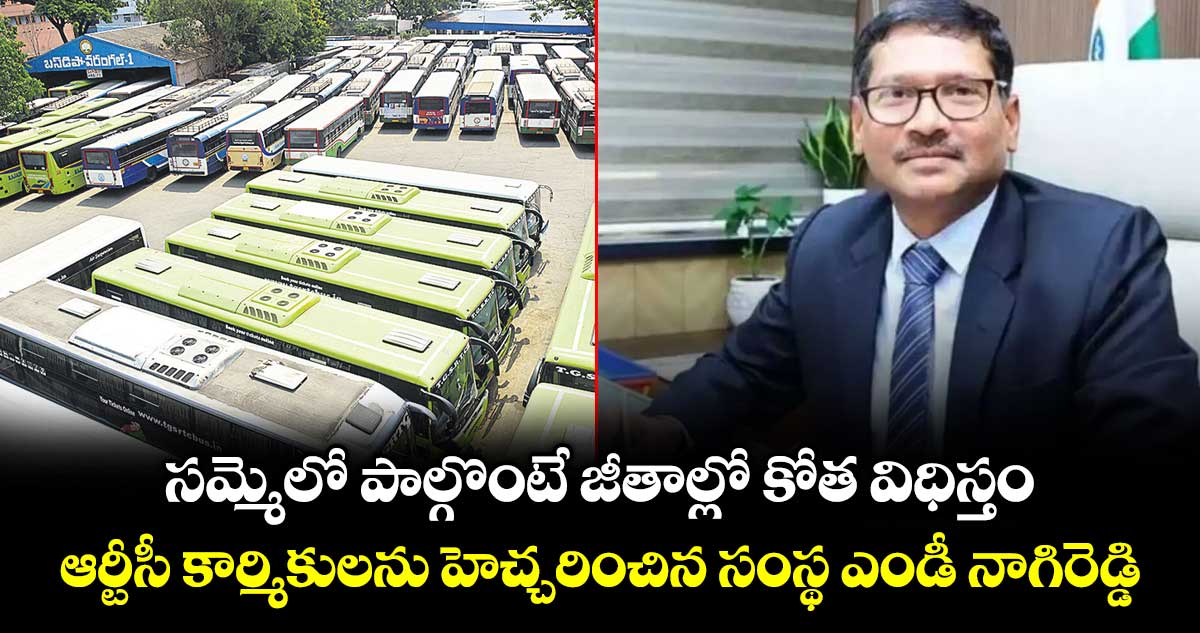హైదరాబాద్, వెలుగు: ఆర్టీసీ కార్మికులు చేపట్టిన సమ్మె చట్టవిరుద్ధమని, ఇందులో పాల్గొనే ఉద్యోగుల జీతంలో కోత విధిస్తామని సంస్థ ఎండీ నాగిరెడ్డి హెచ్చరించారు. బుధవారం ఆయన మీడియాకు ఒక ప్రకటన విడుదల చేశారు. కార్మిక శాఖ జాయింట్ కమిషనర్ కార్యాలయంలో ప్రస్తుతం చర్చలు కొనసాగుతున్నాయని, ఈ ప్రక్రియ ముగియకముందే సమ్మెకు వెళ్లడం చట్టరీత్యా నేరమన్నారు.