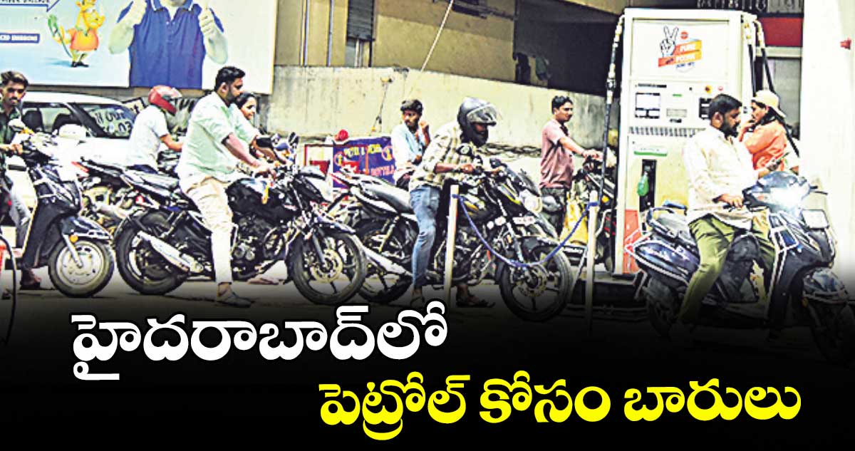 హైదరాబాద్, వెలుగు: ఇరాన్, ఇజ్రాయిల్, అమెరికా మధ్య యుద్ధం నేపథ్యంలో క్రూడ్ ఆయిల్ కొరత ఏర్పడతుందని సోషల్ మీడియాలో వస్తున్న పుకార్లతో జనం బెంబేలెత్తున్నారు. ధరలు పెరుగనున్నాయని వార్తలు రావడంతో రెండు రోజులుగా హైదరాబాద్లోని ప్రధాన పెట్రోల్ బంకుల వద్ద వాహనదారులు పెద్ద సంఖ్యలో క్యూ కడుతున్నారు. వెహికల్స్లో ఫుల్ ట్యాంక్లు నింపుతూ, ప్లాస్టిక్ బాటిళ్లు, క్యాన్లలో కూడా పెట్రోల్ తీసుకెళ్తున్నారు. సోషల్ మీడియాలో “లీటర్ పెట్రోల్ రూ.500 అవుతుంది.. బంకులు మూతపడతాయి” వంటి తప్పుడు న్యూస్వైరల్ కావడం వల్ల పెట్రోల్బంక్ల వద్ద జనం బారులు తీరుతున్నారు. ఈనెల 2న రాత్రి నుంచి మెహదీపట్నం, బంజారాహిల్స్, కూకట్పల్లి, ఎల్బీనగర్ వంటి ప్రాంతాల్లో బంకుల వద్ద వాహనాల క్యూ కనిపించింది.
