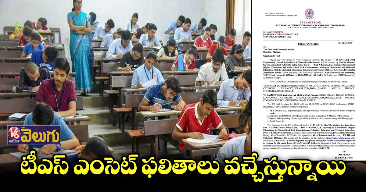 తెలంగాణ ఎంసెట్ ఫలితాలు ఈనెల 12న విడుదల కానున్నాయి. మంత్రి సబితా ఇంద్రారెడ్డి ఈ ఫలితాలను ఉదయం 11 గంటలకు రిలీజ్ చేస్తారు. గత నెల 18 నుంచి 20 వరకు ఇంజినీరింగ్, 30, 31వ తేదీల్లో అగ్రికల్చర్, ఫార్మా ఎంసెట్ పరీక్ష జరిగింది. ఇంజినీరింగ్ ఎగ్జామ్ కు 1,56,812 మంది హాజరయ్యారు. 80 వేల 575 మంది అగ్రికల్చర్, ఫార్మా కోర్సుల కోసం పరీక్ష రాశారు. ఇప్పటికే ప్రాథమిక సమాధానాలు విడుదల చేసి విద్యార్థుల నుంచి అభ్యంతరాలు స్వీకరించారు. తుది సమాధానాలతో పాటు ఫలితాలను ఎంసెట్ కమిటీ విశ్లేషించింది.