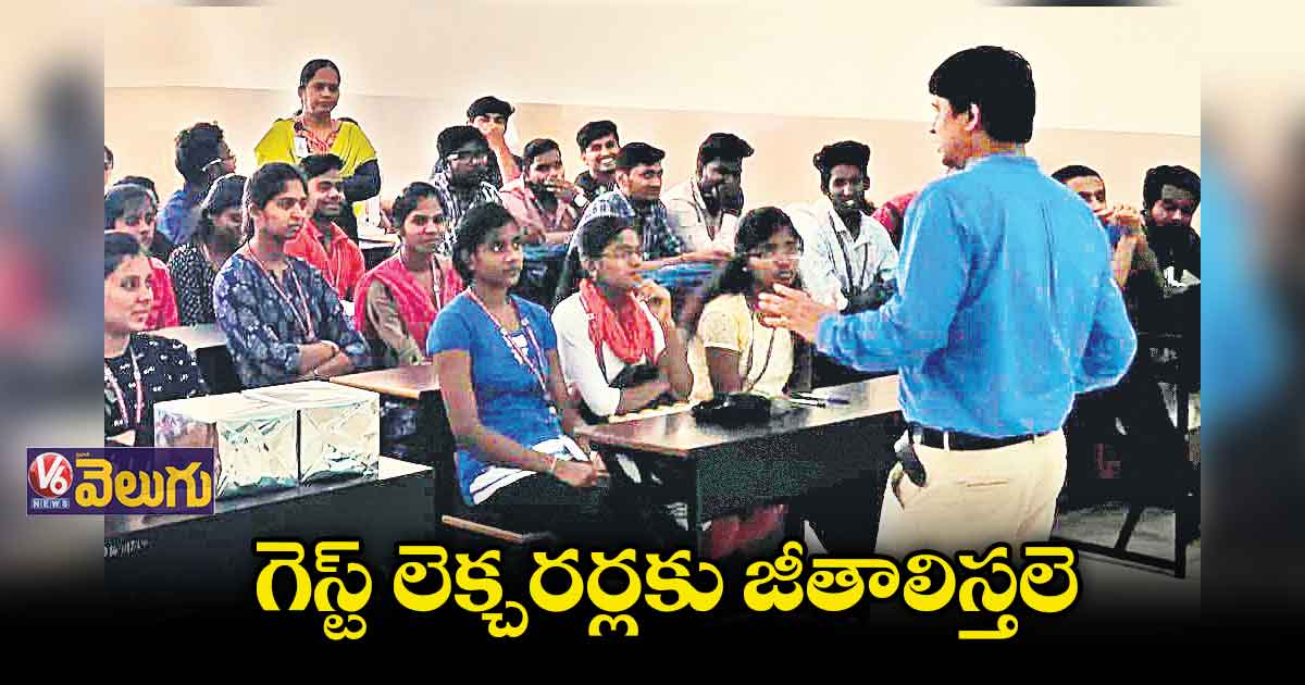 సర్కారు కాలేజీల్లో పనిచేసే గెస్ట్ లెక్చరర్లది పేరు గొప్ప ఊరు దిబ్బ అన్నట్టుగా ఉంది. పేరుకు సర్కారు కాలేజీల్లో పనిచేస్తున్నం అని చెప్పుకుంటున్నా.. నెలనెల జీతాలు సక్కగా రావడం లేదు. దీంతో కుటుంబాలను పోషించుకునేందుకు అప్పులు చేస్తున్నరు. కొందరు బంగారం తాకట్టు పెట్టి అప్పులు తీసుకొని, జీతాలొచ్చాక విడిపించుకుంటున్నరు. మరికొందరు ఇతర పనులు, ఇంకొందరు ఉపాధి, కూలీ పనులకూ వెళ్తున్నరు. ప్రతి ఉద్యోగికి 30 శాతం పీఆర్సీ అమలు చేస్తామని సీఎం కేసీఆర్ ప్రకటించినా.. ఇంకా విద్యాశాఖలో అమలు కావడం లేదు. సర్కారు జూనియర్, డైట్ కాలేజీల్లో పనిచేసే గెస్ట్ లెక్చరర్లకు, మోడల్ స్కూళ్లలో పనిచేసే ఒకేషనల్ టీచర్లకు 30 శాతం జీతాల పెంపుపై ఇప్పటికీ జీవో ఇవ్వలేదు. కేవలం డిగ్రీ కాలేజీల గెస్టు లెక్చరర్లకు మాత్రమే అమలు చేస్తామని సర్కారు జీవో ఇచ్చినా, పెరిగిన జీతాలు మాత్రం వారు ఇంకా అందుకోలేదు.
