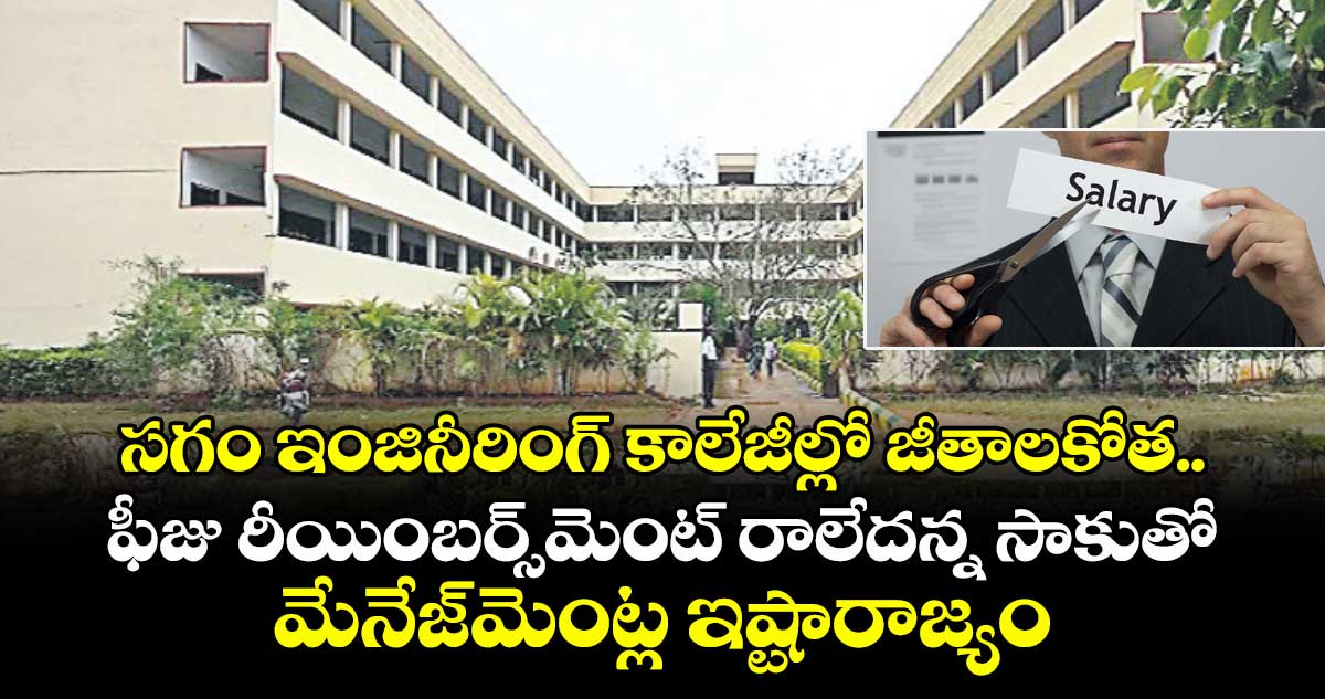 రాష్ట్రవ్యాప్తంగా 160 ప్రైవేట్ ఇంజినీరింగ్ కాలేజీలు ఉండగా, వాటిలో బీటెక్ ఫస్టియర్లో లక్ష మందికి పైగా విద్యార్థులు చేరుతున్నారు. ప్రతి కాలేజీలో 70 శాతం కన్వీనర్ కోటాలో సీట్లను భర్తీ చేస్తుండగా, 30 శాతం మేనేజ్మెంట్ కోటాలో కాలేజీలు సీట్లను అమ్ముకుంటున్నాయి. అయితే, కొంతకాలంగా ప్రభుత్వం ఫీజు రీయింబర్స్మెంట్ నిధులు సమయానికి ఇవ్వడం లేదు. దీనిని సాకుగా చూపిస్తూ పలు ప్రైవేట్ కాలేజీల మేనేజ్మెంట్లు టీచింగ్ ఫ్యాకల్టీతో పాటు నాన్ టీచింగ్ సిబ్బందికి జీతాల్లో కోత పెడ్తున్నాయి. గతంలో కరోనా టైమ్లో కూడా ఇలాగే జీతాల్లో కోత పెట్టి.. ఎగ్గొట్టాయని లెక్చరర్లు వాపోతున్నాయి.