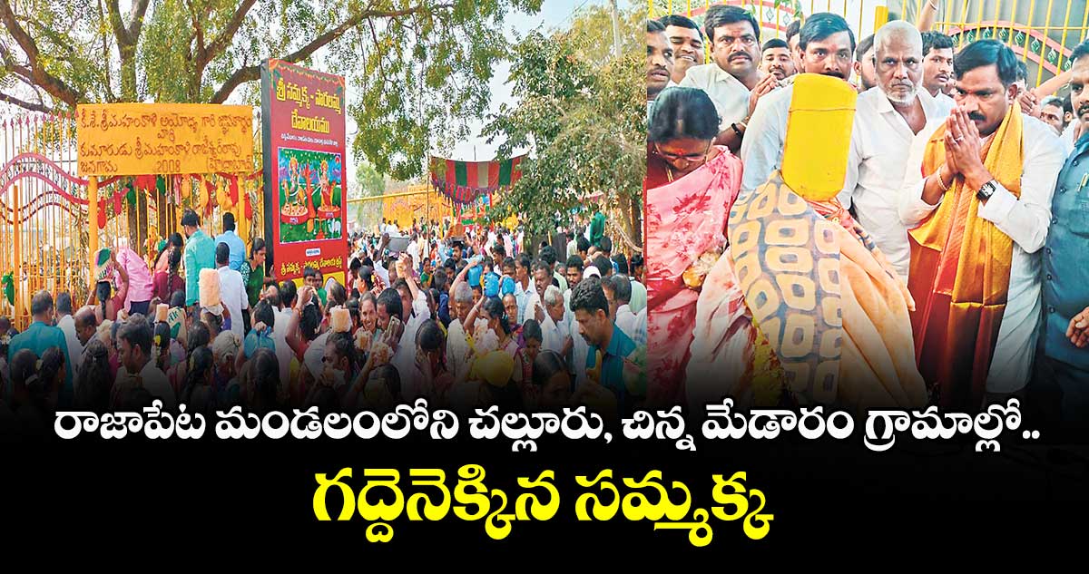 రాజాపేట, వెలుగు: రాజాపేట మండలంలోని చల్లూరు, చిన్న మేడారం గ్రామాల్లో సమ్మక్క, సారలమ్మ జాతర ఘనంగా జరుగుతోంది. భక్తుల జయజయ ధ్వానాలు, శివసత్తుల పూనకాలు, డప్పు చప్పుళ్లు, భారీ బందోబస్తు మధ్య జాతర రెండో రోజు గురువారం సమ్మక్క గద్దె నెక్కింది. సమ్మక్క, సారలమ్మను దర్శించుకోవడానికి భక్తులు పెద్ద సంఖ్యలో జాతర ప్రాంగణానికి చేరుకున్నారు.