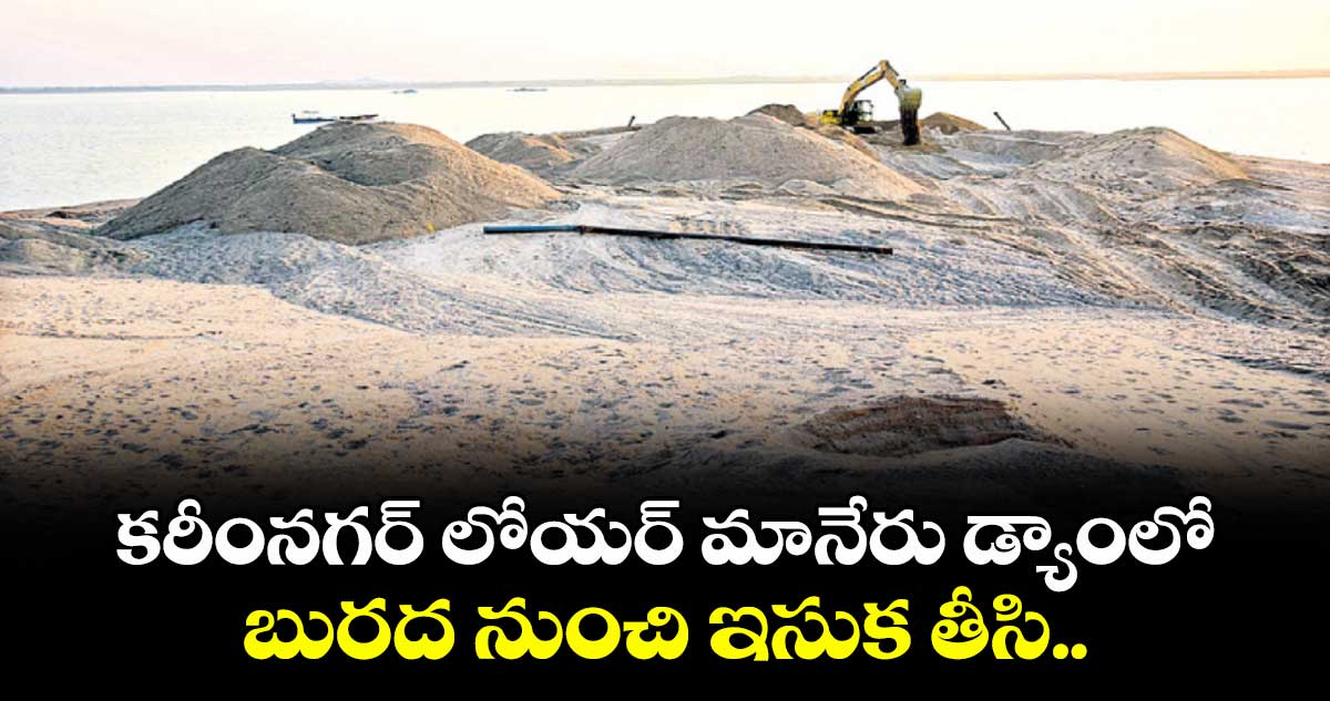 కరీంనగర్ లోయర్ మానేరు డ్యాంలో ఏళ్ల తరబడి పేరుకుపోయిన సిల్ట్ను కాంట్రాక్ట్ ఏజెన్సీ తొలగిస్తోంది. సిల్ట్ నుంచి ఇసుకను వేరు చేసి ఇలా కుప్పలుగా పోస్తున్నారు. సాగునీటి అవసరాల కోసం కిందికి నీళ్లు వదులుతుండడంతో ఎల్ఎండీలో నీటి నిల్వ 7 టీఎంసీలకు పడిపోయింది. నీటి నిల్వ తగ్గడంతో సిల్ట్ తొలిగించే ప్రక్రియను వేగవంతం చేశారు.