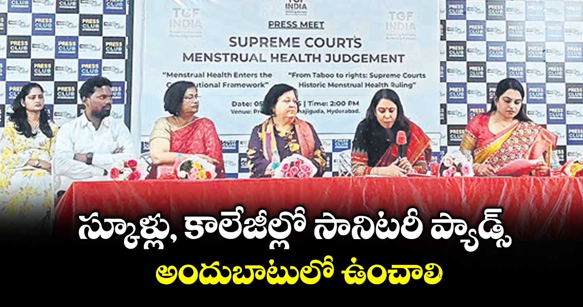 పంజాగుట్ట, వెలుగు: బాలికల రుతుస్రావ ఆరోగ్యంపై సుప్రీం కోర్టు గత నెల 13న ఇచ్చిన తీర్పును కేంద్ర, రాష్ట్ర ప్రభుత్వాలు అమలు చేయాలని ది గర్ల్ ఫౌండేషన్ ఫౌండర్ రోహిణి నాయుడు, ప్రముఖ మానసిక వైద్య నిపుణురాలు అంజలి డిమాండ్ చేశారు. హైదరాబాద్ సోమాజిగూడ ప్రెస్క్లబ్లో గురువారం టీజీఎఫ్ ఇండియా ఆధ్వర్యంలో నిర్వహించిన సమావేశంలో వారు మాట్లాడారు.