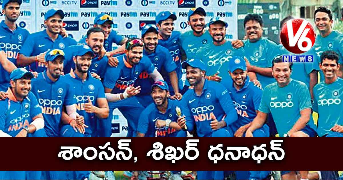 లోకల్ హీరో సంజు శాంసన్ (48 బంతుల్లో 6 ఫోర్లు, 7 సిక్సర్లతో 91), టీమిండియా స్టార్ క్రికెటర్ శిఖర్ ధవన్ (36 బంతుల్లో 5 ఫోర్లు, 2 సిక్సర్లతో 51) ధనాధన్ బ్యాటింగ్తో చెలరేగడంతో సౌతాఫ్రికా–ఎతో శుక్రవారం జరిగిన చివరి, ఐదో వన్డేలో ఇండియా–ఎ 36 రన్స్ తేడాతో ఘన విజయం సాధించింది. ఐదు వన్డేల సిరీస్ను 4–1తో కైవసం చేసుకుంది. వర్షం కారణంగా 20 ఓవర్లకు కుదించిన ఈ మ్యాచ్లో టాస్ నెగ్గి బ్యాటింగ్ చేసిన హోమ్టీమ్.. శాంసన్, ధవన్ మెరుపులతో 4 వికెట్లకు 204 పరుగుల భారీ స్కోరు చేసింది. కెప్టెన్ శ్రేయస్ అయ్యర్ (19 బంతుల్లో 36) కూడా రాణించాడు. ఛేజింగ్లో ఓవర్లన్నీ ఆడిన సఫారీ టీమ్ 168 రన్స్కు ఆలౌటై ఓడిపోయింది. రీజా హెండ్రిక్స్ (59), కైల్ వెరేన్ (44) మాత్రమే పోరాడారు. ఇండియా బౌలర్లలో శార్దుల్ మూడు, వాషింగ్టన్ రెండు వికెట్లతో సత్తా చాటారు. శాంసన్ మ్యాన్ ఆఫ్ ద మ్యాచ్గా నిలిచాడు.