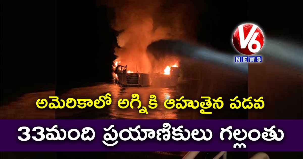 అమెరికాలోని ఓ పడవ అగ్ని ప్రమాదానికి గురైంది. ఈ ఘటనలో 8 మంది ప్రాణాలు కోల్పోగా… 33 మంది ప్రయాణికులు గల్లంతయ్యారు. ఉత్తర కాలిఫోర్నియా సమీపంలోని శాంతాక్రజ్ ఐలండ్ సమీపంలో సోమవారం తెల్లవారుజామున ఈ ఘటన జరిగింది. గల్లంతైన 33 మందీ చనిపోయి ఉండవచ్చని అమెరికా తీర రక్షక దళం భావిస్తోంది. ఇప్పటి వరకు ఐదుగురిని సురక్షితంగా బయటకు తీసుకురావడంతో పాటు.. నలుగురి మృతదేహాలను వెలికి తీసింది తీర గస్తీదళం. వీరిలో ఇద్దరు మహిళలు ఉన్నారు. మిగతా వారి కోసం గాలిస్తున్నట్లు అధికారులు తెలిపారు.