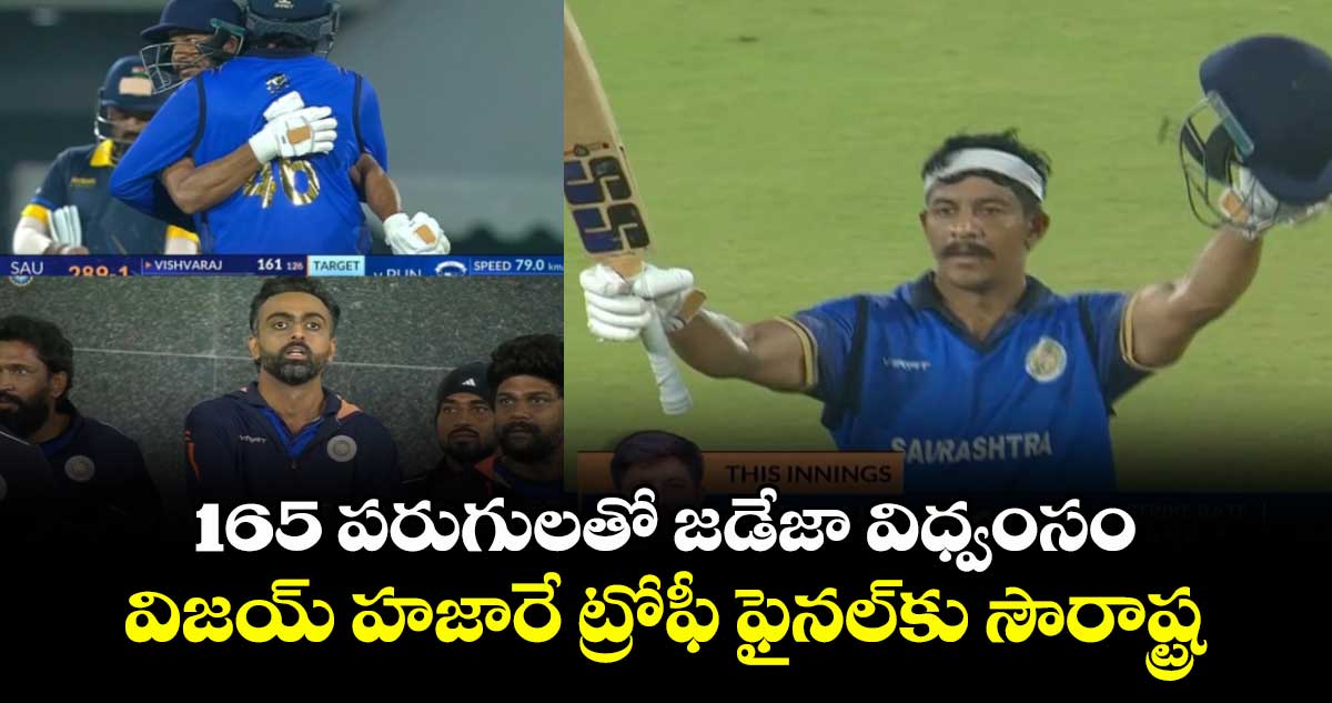 విజయ్ హజారే ట్రోఫీ 2025-26 ఫైనల్ కు సౌరాష్ట్ర దూసుకెళ్లింది. శుక్రవారం (జనవరి 16) పంజాబ్ తో జరిగిన రెండో సెమీ ఫైనల్ అలవోక విజయం సాధించింది. బెంగళూరు వేదికగా బీసీసీఐ సెంటర్ ఆఫ్ ఎక్సలెన్స్ గ్రౌండ్ 1లో జరిగిన ఈ మ్యాచ్ లో భారీ లక్ష్యాన్ని సౌరాష్ట్ర ఈజీగా ఛేజ్ చేసి సగర్వంగా ఫైనల్ లో అడుగుపెట్టింది. సౌరాష్ట్ర ఓపెనర్ విశ్వరాజ్ జడేజా (127 బంతుల్లో 165) భారీ సెంచరీతో చెలరేగి జట్టును ఒంటి చేత్తో గెలిపించాడు. ఈ మ్యాచ్ లో మొదట బ్యాటింగ్ చేసిన పంజాబ్ నిర్ణీత 50 ఓవర్లలో 291 పరుగులకు ఆలౌటైంది. లక్ష్య ఛేదనలో సౌరాష్ట్ర కేవలం 39.3 ఓవర్లలో వికెట్ నష్టానికి 293 పరుగులు చేసి గెలిచింది.