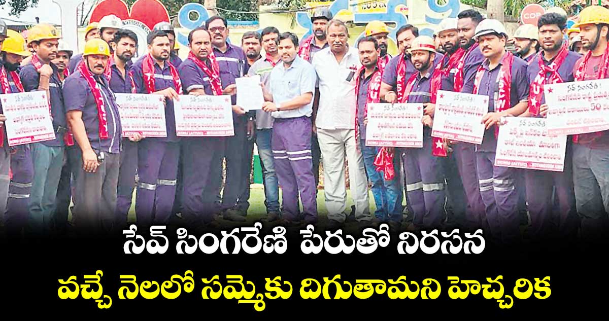 కోల్బెల్ట్/కొత్తగూడెం, వెలుగు : ‘సేవ్ సింగరేణి’ పేరుతో సంస్థ పరిధిలోని అన్ని గనులు, డిపార్ట్మెంట్ల వద్ద మంగళవారం కార్మికులు నల్లబ్యాడ్జీలతో నిరసన చేపట్టారు. ఈ సందర్భంగా సింగరేణి గుర్తింపు సంఘం ఏఐటీయూసీ అధ్యక్షుడు వాసిరెడ్డి సీతారామయ్య మాట్లాడుతూ.. సింగరేణి కార్మికుల సమస్యలు పరిష్కరించకపోతే వచ్చే నెలలో సమ్మెకు దిగుతామని హెచ్చరించారు.