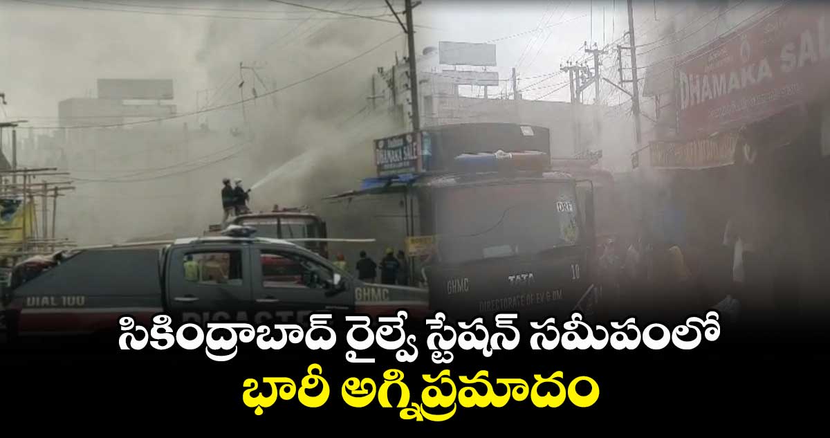 సికింద్రాబాద్ రైల్వే స్టేషన్ సమీపంలో భారీ అగ్నిప్రమాదం చోటు చేసుకుంది. మార్కెట్ పోలీస్ స్టేషన్ పరిధిలోని పాలికా బజార్లో అగ్నిప్రమాదం జరిగింది. అన్ మోల్ సెలెక్షన్..అన్ మోల్ కిడ్స్ వేర్ బట్టల షాపులో షార్ట్ సర్క్యూట్ కారణంగా మంటలు చెలరేగాయి. అగ్నిప్రమాదంతో ఆ ప్రాంతమంతా దట్టమైన పొగలు అలుముకున్నాయి. భయానక వాతావరణం నెలకొంది. చుట్టు ప్రక్కల లాడ్జీలకు మంటలు వ్యాపించాయి. దీంతో లాడ్జీ నిర్వాహకులు, ప్రజలు భయంతో పరుగులు తీశారు. సమాచారం అందుకున్న అగ్ని మాపక సిబ్బంది మంటలను ఆర్పేశారు. నాలుగు ఫైరింజన్లు మంటలను అదుపు చేయడంతో అంతా ఊపిరిపీల్చుకున్నారు.