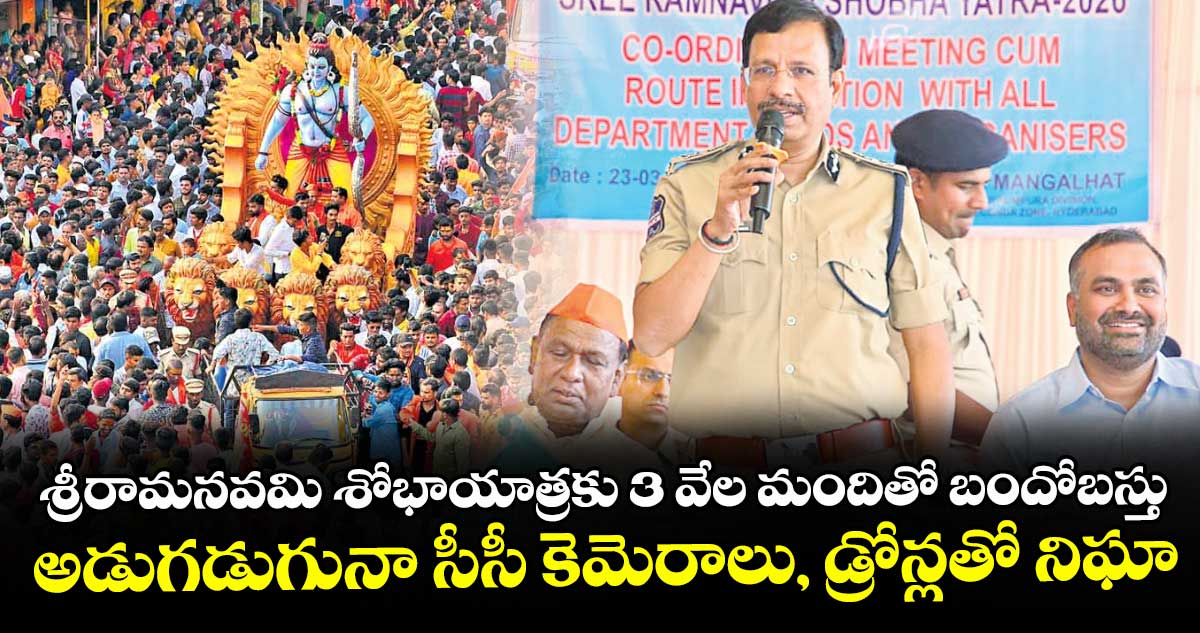 మెహిదీపట్నం, వెలుగు: సిటీలో మార్చి 27న శ్రీరామనవమి శోభాయాత్రను అత్యంత వైభవంగా, ప్రశాంతంగా నిర్వహించేందుకు అన్ని ప్రభుత్వ శాఖల అధికారులు సర్వం సిద్ధమయ్యారు. సోమవారం సీతారాం బాగ్లోని ద్రౌపది గార్డెన్స్లో జరిగిన అధికారుల సమన్వయ సమావేశంలో సీపీ వీసీ సజ్జనార్, జీహెచ్ఎంసీ కమిషనర్ ఆర్వీ కర్ణన్పాల్గొన్నారు. ఈ సందర్భంగా సీపీ మాట్లాడుతూ.. 2010లో ప్రారంభమైన ఈ యాత్ర అతి తక్కువ కాలంలోనే దేశవ్యాప్త గుర్తింపు పొందిందని, సీతారాం బాగ్ నుంచి హనుమాన్ వ్యాయామశాల వరకు సాగే ఈ వేడుకను భక్తులు క్రమశిక్షణతో జరుపుకోవాలని కోరారు.