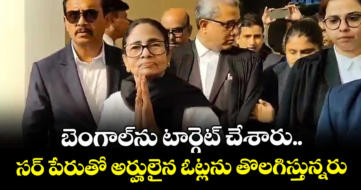 న్యూఢిల్లీ: పశ్చిమ బెంగాల్లో ఎలక్షన్ కమిషన్ (ఈసీ) చేపట్టిన ‘సర్’ ప్రక్రియలో అవకతవకలు చోటుచేసుకుంటున్నాయని ఆ రాష్ట్ర సీఎం మమతా బెనర్జీ ఆరోపించారు. సర్ ప్రక్రియ పారదర్శకంగా జరిగేలా చూడాలని, ప్రజాస్వామ్యాన్ని కాపాడాలని సుప్రీంకోర్టును ఆమె కోరారు. ‘సర్’ను సవాల్ చేస్తూ మమత దాఖలు చేసిన పిటిషన్పై చీఫ్ జస్టిస్ సూర్యకాంత్, జస్టిస్ జోయ్మాల్యా బాగ్చీ, జస్టిస్ విపుల్ ఎం పంచోలితో కూడిన బెంచ్ బుధవారం విచారణ చేపట్టింది. ఈ సందర్భంగా మమత స్వయంగా వాదనలు వినిపించారు. ‘‘పశ్చిమ బెంగాల్ను ఎలక్షన్ కమిషన్ టార్గెట్ చేసింది. రాష్ట్ర ప్రజలను బెదిరింపులకు గురిచేస్తున్నది. ఈసీ చేపట్టిన సర్ ప్రక్రియ ఓటర్లను తొలగించడానికే తప్ప.. నమోదు చేయడానికి కాదు. బతికి ఉన్నోళ్లను చనిపోయినట్టుగా పేర్కొంటూ ఓటర్ జాబితాలో నుంచి వాళ్ల పేర్లను తొలగిస్తున్నది. సుప్రీంకోర్టు ఆదేశాలు ఉన్నప్పటికీ, ఓటర్లకు ప్రూఫ్గా ఆధార్ కార్డును ఈసీ అనుమతించడం లేదు. ఆధార్ కాకుండా వేరే డాక్యుమెంట్లు చూపించాలంటూ ప్రజలను ఇబ్బందులకు గురిచేస్తున్నది. ఇతర రాష్ట్రాల్లో రెసిడెన్షియల్ సర్టిఫికెట్, ఫ్యామిలీ రిజిస్టర్ కార్డు తదితర డాక్యుమెంట్లను అనుమతిస్తున్నారు. కానీ బెంగాల్లో మాత్రం వాటిని అనుమతించడం లేదు. కేవలం మా రాష్ట్రాన్నే టార్గెట్ చేశారు. నిజానికి సర్ ప్రక్రియ పూర్తి చేయడానికి రెండేండ్ల సమయం పడుతుంది. కానీ బెంగాల్లో ఎలక్షన్స్కు ముందు హడావిడిగా చేపట్టారు. అదీ పండుగలు, పంటల కోత సమయంలో చేపట్టి ప్రజలను ఇబ్బందులకు గురిచేస్తున్నారు” అని మమత కోర్టు దృష్టికి తీసుకెళ్లారు. కేవలం బెంగాల్నే టార్గెట్ చేశారని, ఇదే విధానాన్ని అస్సాంలో ఎందుకు అమలు చేయడం లేదని ఆమె ప్రశ్నించారు.