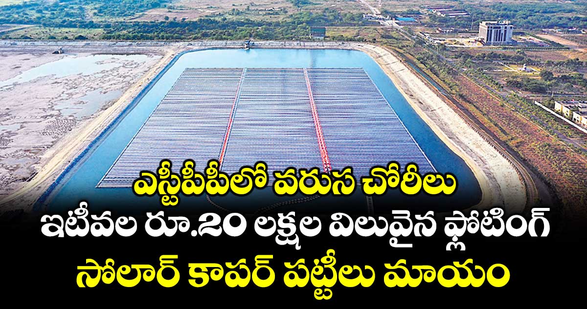ఎస్టీపీపీలో నెలరోజుల కింద భారీ చోరీ జరిగింది. దాదాపు రూ.20 లక్షల విలువైన ఫ్లోటింగ్ సోలార్ కాపర్ పట్టీలు మాయమయ్యాయి. చోరి జరిగిన విషయాన్ని ఎస్టీపీపీ అధికారులు గోప్యంగా ఉంచడంతో ఈ విషయం ఆలస్యంగా వెలుగులోకి వచ్చింది. ఎస్టీపీపీలో 10 మెగావాట్ల ఫ్లోటింగ్ సోలార్ ప్లాంట్ ఏర్పాటు చేస్తున్నారు. ఇప్పటికే ఐదు మెగావాట్ల ప్లాంట్ పనులు పూర్తయ్యాయి. మరో ఐదు మెగావాట్ల ఫ్లోటింగ్ సోలార్ ప్లాంట్ పనులు జరుగుతున్నాయి.