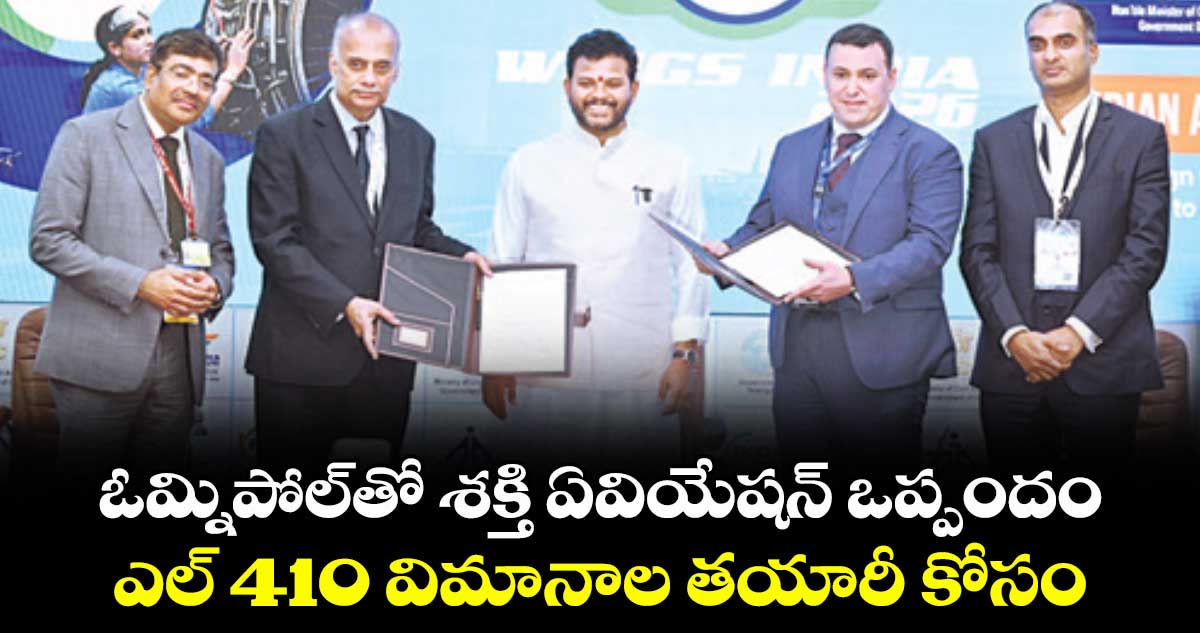 హైదరాబాద్, వెలుగు: వింగ్స్ ఇండియా 2026 వేదికగా శక్తి ఏవియేషన్ అండ్ డిఫెన్స్ సిస్టమ్స్ (ఎస్ఏడీఎస్పీఎల్), ఓమ్నిపోల్ గ్రూప్ మధ్య కీలక ఒప్పందం జరిగింది. 19 సీట్ల సామర్థ్యం ఉన్న ఎల్ 410 ఎన్జీ విమానాలను భారత్లో తయారు చేయడానికి ఇరు సంస్థలు చేతులు కలిపాయి.
