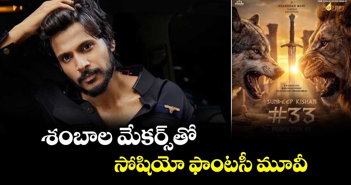 వైవిధ్యభరిత చిత్రాలతో ముందుకెళ్తున్న సందీప్ కిషన్.. తాజాగా మరో డిఫరెంట్ మూవీకి సైన్ చేశాడు. శనివారం ఈ ప్రాజెక్ట్ను అనౌన్స్ చేశారు. ఇటీవల ‘శంభాల’తో మెప్పించిన దర్శకుడు యుగంధర్ ముని, నిర్మాతలు మహిధర్ రెడ్డి, రాజశేఖర్ అన్నభీమోజు కాంబినేషన్లో ఈ సినిమా రాబోతోంది. ఈ పాన్ ఇండియా సోషియో ఫాంటసీ మూవీకి సంబంధించి ఓ క్రేజీ పోస్టర్ను విడుదల చేశారు. ఇందులో సింహం, తోడేలు ఎదురెదురుగా కనిపిస్తుండగా వెనుక యుద్ధభూమితో పాటు పురాతన ఖడ్గం ఉన్నాయి.