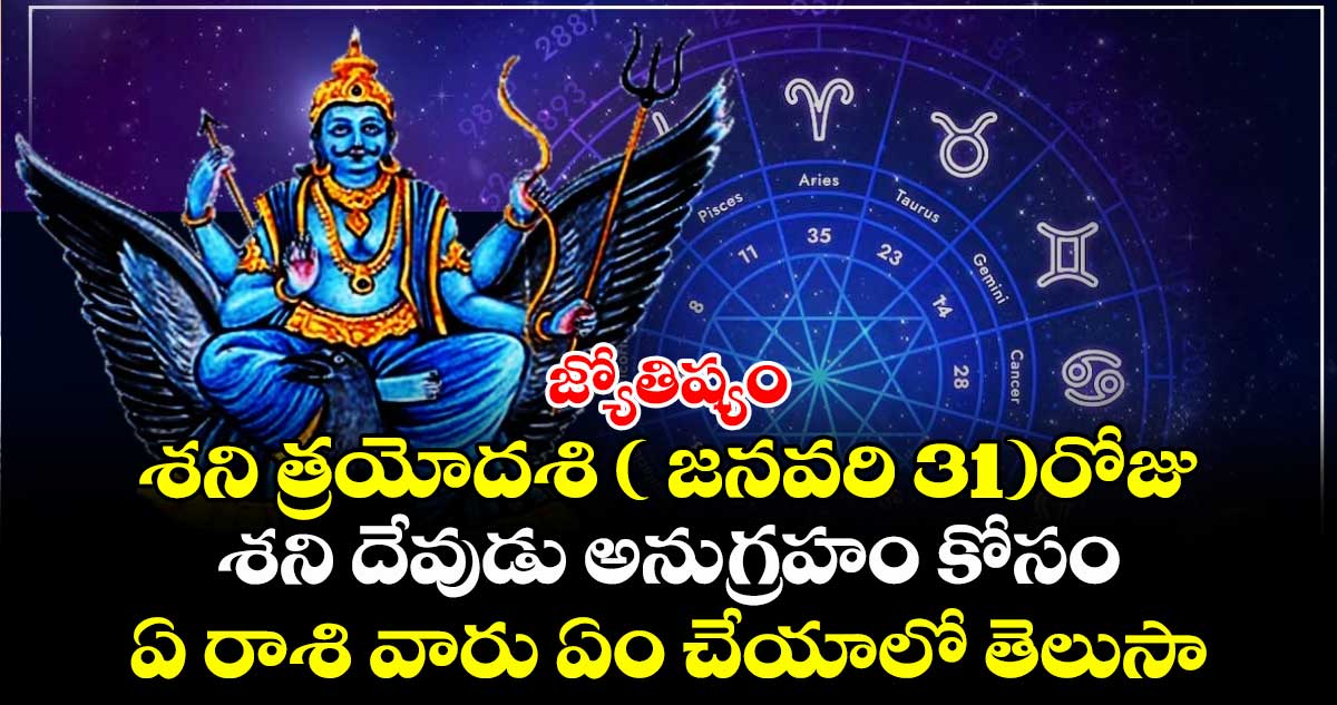 ద్వాదశ రాశుల వారి జీవితాలలో ఏదో ఒక సమయంలో శని ప్రభావం తప్పనిసరిగా ఉంటుంది. శని సంతోషాలను మాత్రమే కాదు కఠినమైన సమయాలను, దుఃఖాలను కూడా ఇచ్చే దేవుడు. అటువంటి శని దేవుడు కొన్ని రాశుల వారి జీవితాలలో ఈ సంవత్సరం కష్టాలను కలిగిస్తున్నాడు. ఇక ఆయా రాశుల వారు జనవరి 31 తేదీన శని త్రయోదశి రోజు కొన్ని పరిహారాలు చేస్తే శని దోషాల నుంచి విముక్తి కలుగుతుంది. ఏ రాశి వారు ఏం చేయాలో ఈ స్టోరీలో తెలుసుకుందాం. . .!