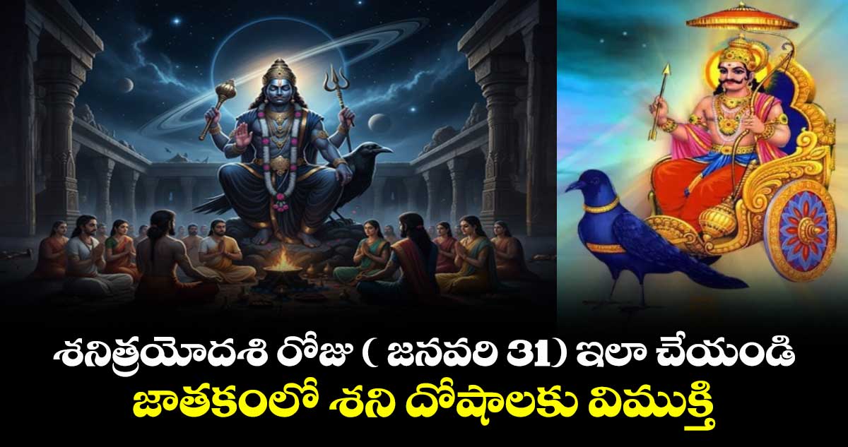 జ్యోతిష్య శాస్త్రం ప్రకారం శని గ్రహం కష్టాలను.. నష్టాలను కలుగజేస్తాడు. త్రయోదశితో కూడిన శనివారం అంటే శని భగవానుడికి చాలా ఇష్టం . శని గ్రహం జాతకంలో వక్ర దృష్టితో శనివారం త్రయోదశి రోజున శని భగవానుడిని పూజించాలి. అలా చేస్తే శని భగవానుడు శాంతిస్తాడని పండితులు చెబుతున్నారు. .. పంచాంగం ప్రకారం జనవరి 31 వ తేది శనివారం త్రయోదశి వచ్చింది. ఆరోజు ఎలాంటి నియమాలు పాటించాలో ఈ స్టోరీలో తెలుసుకుందాం. . .