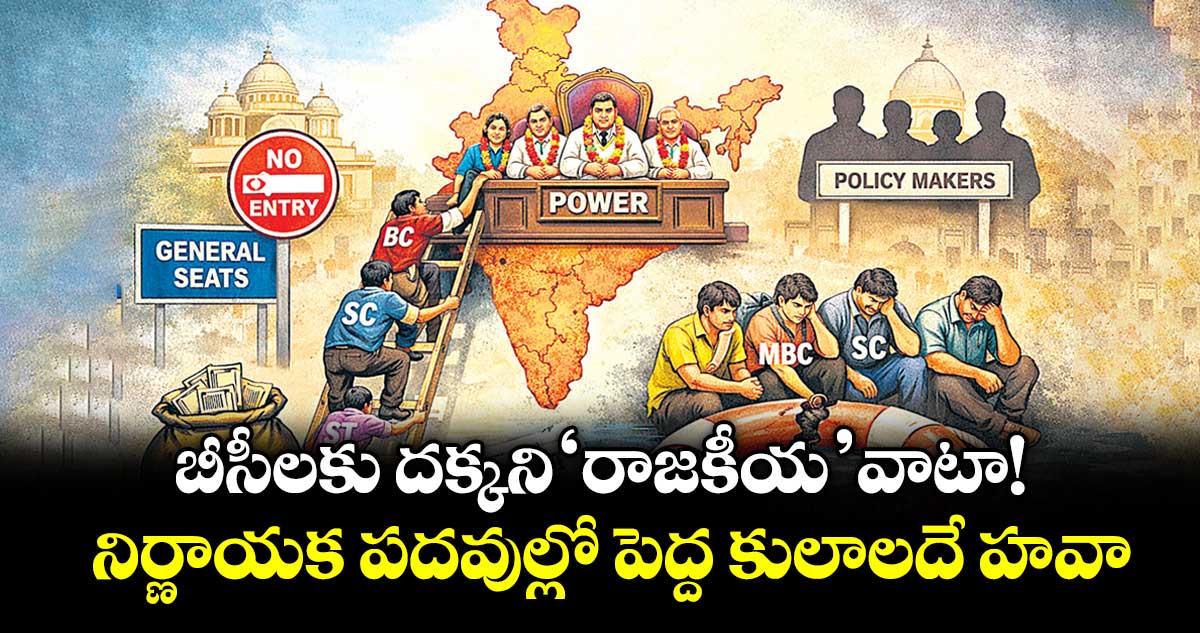 హైదరాబాద్, వెలుగు: రాష్ట్ర జనాభాలో సగానికి పైగా ఉన్న బీసీ వర్గాలకు రాజకీయంగా నిర్ణాయక పదవుల్లో సరైన వాటా దక్కడం లేదని, ఇందులో వీరి వాటా కేవలం 3 శాతం మాత్రమే ఉన్నట్లు తేలింది. ముఖ్యంగా పట్టణ ప్రాంతాల్లో అగ్రవర్ణాల(ఓసీ) ఆధిపత్యం ఉండగా, అట్టడుగు వర్గాల ప్రాతినిధ్యం నామమాత్రంగా మిగిలింది. ప్రభుత్వ విధానాలను రూపొందించే ఉన్నత స్థాయి రాజకీయ పదవుల్లో కొన్ని సామాజిక వర్గాల వారే దశాబ్దాలుగా పాతుకుపోయినట్లు గణాంకాలు చెప్తున్నాయి. 2024లో రాష్ట్ర ప్రభుత్వం నిర్వహించిన సమగ్ర సామాజిక, ఆర్థిక, విద్య, ఉపాధి, రాజకీయ, కుల సర్వేను విశ్లేషించిన నిపుణుల బృందం తన నివేదికలో ఇలాంటి పలు ఆసక్తికర అంశాలు వెల్లడించాయి.