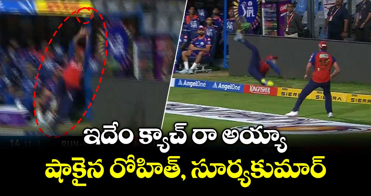 కాగా అప్పటి వరకు అరిచిన ముంబై ఇండియన్స్ ఫ్యాన్స్.. ఈ క్యాచ్తో సైలెంట్ అయ్యారు. దాంతో వారిని ఇంకా గట్టిగా అరవాలంటూ కోరాడు. ఈ క్యాచ్ను ముంబై డగౌట్లో కూర్చొని చూసిన రోహిత్ శర్మ, సూర్యకుమార్ యాదవ్ వాటే క్యాచ్ అంటూ ప్రశంసించారు. 'ఇదేం క్యాచ్రా బాబు’అని సూర్యతో రోహిత్ శర్మ అంటున్నట్లు టీవీ కెమెరాల్లో రికార్డు అయింది. ఈ మ్యాచ్లో ఫస్ట్ బ్యాటింగ్ చేసిన ముంబై ఇండియన్స్ నిర్ణీత 20 ఓవర్లలో 6 వికెట్లకు 195 రన్స్ చేసింది. క్వింటన్ డికాక్(60 బంతుల్లో 8 ఫోర్లు, 7 సిక్స్లతో 112 నాటౌట్) అజేయ శతకంతో చెలరేగగా.. నమన్ ధీర్(31 బంతుల్లో 3 ఫోర్లు, 3 సిక్స్లతో 50) హాఫ్ సెంచరీ చేశాడు.