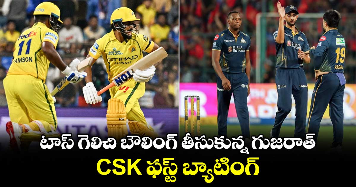 CSK vs GT: ఐపీఎల్ 19వ సీజన్లో భాగంగా చెన్నైలోని చిదంబరం స్టేడియంలో గుజరాత్ టైటాన్స్ వర్సెస్ చెన్నై సూపర్ కింగ్స్ జట్ల మధ్య రసవత్తర పోరుకు తెరలేచింది. టాస్ గెలిచిన గుజరాత్ కెప్టెన్ శుభ్మన్ గిల్ తొలుత బౌలింగ్ తీసుకున్నాడు. పిచ్ పరిస్థితులని దృష్టిలో ఉంచుకుని ఈ నిర్ణయం తీసుకున్నట్లు గిల్ తెలిపాడు. దీంతో మొదట బ్యాటింగ్కు దిగనున్న చెన్నై సూపర్ కింగ్స్ భారీ స్కోరుపై కన్నేసింది. పిచ్ పొడిగా ఉందని, బోర్డుపై మంచి స్కోరు ఉంచి దానిని కాపాడుకుంటామని సీఎస్కే కెప్టెన్ గైక్వాడ్ ధీమా వ్యక్తం చేశాడు. ఈ మ్యాచ్ కోసం చెన్నై జట్టులో ఒక మార్పు చోటు చేసుకుంది. ఉర్విల్ పటేల్ తుది జట్టులోకి వచ్చాడు. మరోవైపు గుజరాత్ జట్టులోకి అర్షద్ ఖాన్ పునరాగమనం చేశాడు.