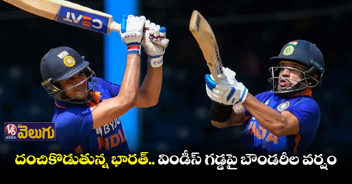 పోర్ట్ ఆఫ్ స్పెయిన్ (ట్రినిడాడ్): వెస్ట్ ఇండీస్ తో 3 వన్డేల సిరీస్ లో భాగంగా ఇవాళ జరుగుతున్న ఫస్ట్ వన్డేలో భారత్ భారీ స్కోర్ దిశగా వెళ్తుంది. టాస్ ఓడి ఫస్ట్ బ్యాటింగ్ కు దిగిన టీమిండియాకు మంచి స్టార్ట్ లభించింది. ఓపెనర్లు శిఖర్ ధావన్, గిల్ దూకుడుగా ఆడుతున్నారు. అందివచ్చిన బాల్స్ ని బౌండరీలకు తరలిస్తున్నారు. ఈ క్రమంలోనే వీరిద్దరూ హాఫ్ సెంచరీలు కంప్లీట్ చేసున్నారు. 17 ఓవర్లు ముగిసే సమయానికి భారత్ స్కోర్ వికెట్ నష్టపోకుండా 117 రన్స్ చేసింది. గిల్(62), ధావన్(50) రన్స్ తో క్రీజులో ఉన్నారు. మొదటి వికెట్ కోసం విండీస్ బౌలర్లు చెమటోడుస్తున్నా.. మనోళ్లు వాళ్లకి అవకాశం ఇవ్వడంలేదు. 50 ఓవర్ల వరకు ఇలాగే ఆడితే భారత్ స్కోర్ 400 దాటినా దాటొచ్చు.