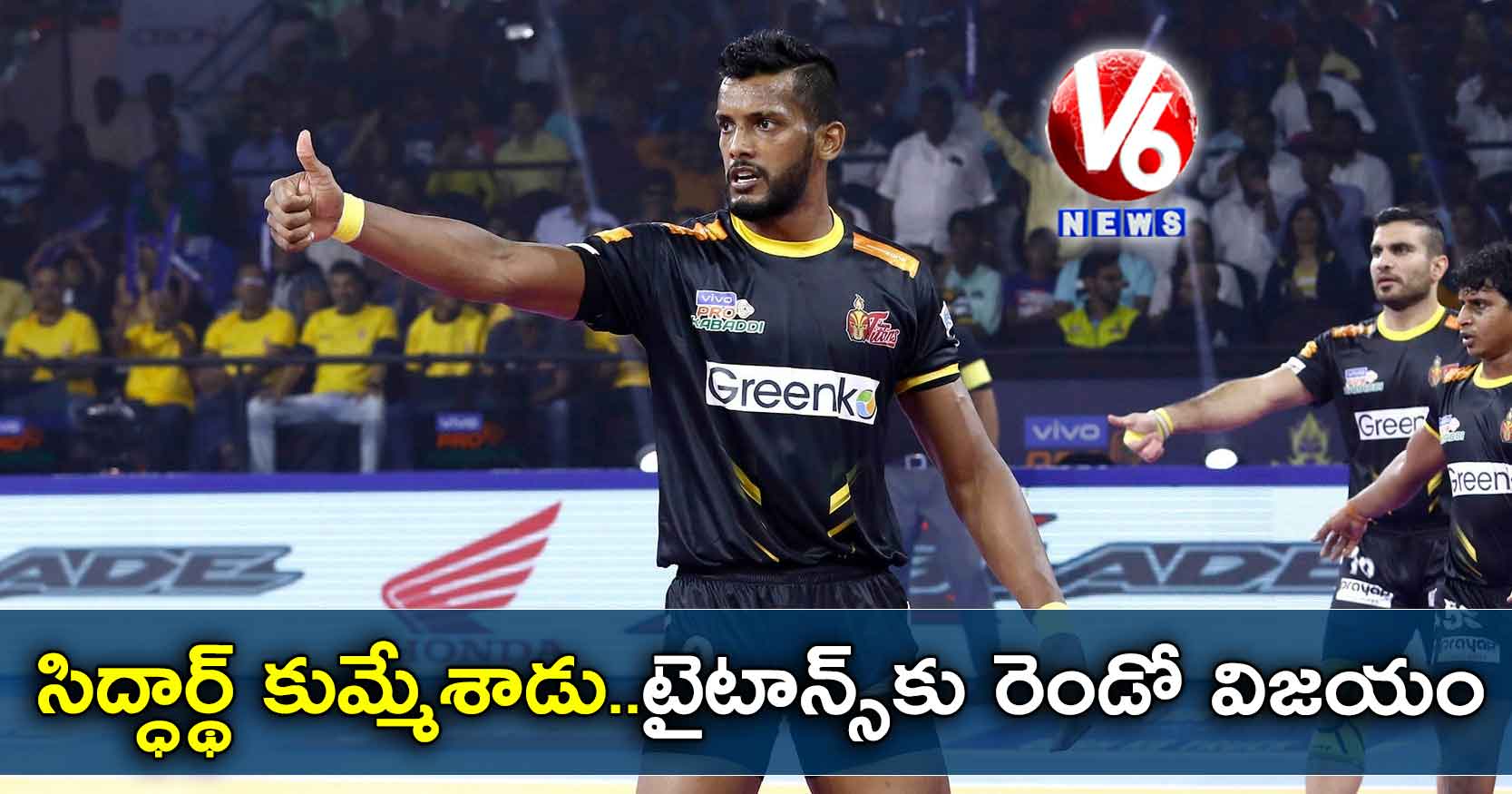 చెన్నై ప్రొ కబడ్డీ లీగ్ (పీకేఎల్)లో టైటాన్స్ స్టార్ రైడర్ సిద్ధార్థ్ దేశాయ్.. రైడింగ్లో కుమ్మేశాడు. హర్యానా డిఫెన్స్ను ఛేదిస్తూ 18 పాయింట్లు కొల్లగొట్టాడు. రైడింగ్కు వెళ్లిన ప్రతిసారి పాయింట్ తీసుకురావడంతో.. ఆదివారం జరిగిన లీగ్ మ్యాచ్లో తెలుగు టైటాన్స్ 40–29 పాయింట్లతో హర్యానా స్టీలర్స్పై ఘన విజయం సాధించింది. ఈ సీజన్లో తెలుగు టీమ్కు ఇది రెండో విజయం. సిద్ధార్థ్ సూపర్–10తో (సింగిల్ మ్యాచ్లో 10 లేదా అంతకంటే ఎక్కువ పాయింట్ల తీసుకురావడం) విజయంలో కీలక పాత్ర పోషించగా, సూరజ్ దేశాయ్ 6, అబోజర్, విశాల్ చెరో మూడు పాయింట్లతో అండగా నిలిచారు. సిద్ధార్థ్ ఈ సీజన్లో రెండోసారి సూపర్–10 సాధించడం విశేషం. హర్యానా తరఫున వికాస్ (9), వినయ్ (4), ప్రశాంత్ (3) మెరుగ్గా ఆడారు. ఆరంభం నుంచి దూకుడుగా ఆడిన టైటాన్స్కు దేశాయ్ బ్రదర్స్ రైడింగ్తో వరుసగా పాయింట్లు అందించారు. తొలి హాఫ్ మరో ఎనిమిది నిమిషాల్లో ముగుస్తుందనగా మంచి సమన్వయంతో వికాస్ను ట్యాకిల్ చేయడంతో టైటాన్స్ 21–13 ఆధిక్యంలో నిలిచింది. రెండో హాఫ్లోనూ టైటాన్స్ డిఫెన్స్లో ఆకట్టుకుంది. వికాస్కు ఏమాత్రం అవకాశం ఇవ్వకుండా హర్యానాను ఆలౌట్ చేసింది. మరో మ్యాచ్లో పుణెరి పల్టన్ 31–31తో తమిళ్ తలైవాస్పై డ్రా చేసుకుంది. పల్టన్ టీమ్లో పంకజ్ (7), నితిన్ (5), సుర్జీత్ (7), మంజిత్ (5) రాణించారు. తలైవాస్లో రాహుల్ (8), అజిత్ (8), రన్సింగ్ (4) చెలరేగిన ప్రయోజనం లేకపోయింది.