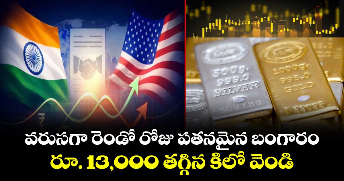 దేశ రాజధాని ఢిల్లీలో వరుసగా రెండో రోజు కూడా బంగారం, వెండి ధరలు భారీగా తగ్గాయి. అంతర్జాతీయంగా పరిస్థితులు మారడం, పెట్టుబడిదారులు లాభాల కోసం ప్రాఫిట్ బుకింగ్ ఇందుకు ప్రధాన కారణం. దింతో కిలో వెండి ధర ఏకంగా రూ. 13,000 తగ్గి రూ. 2,68,000 నుంచి రూ. 2,55,000కు పడిపోయింది. అంటే దాదాపు 5 శాతం తగ్గుదల. ఇక 10 గ్రాముల బంగారం ధర రూ. 3,400 తగ్గి రూ. 1,60,600 ఉన్న ధర ఇప్పుడు రూ. 1,57,200కు చేరుకుంది.