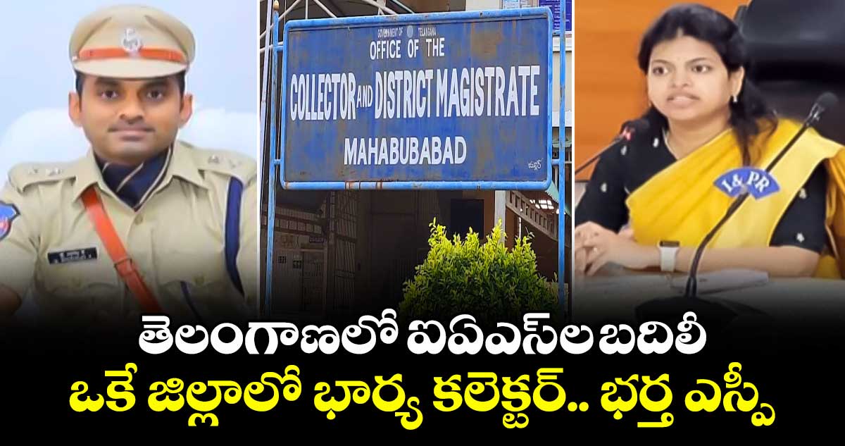 తెలంగాణలో భారీగా ఐఏస్ ల బదిలీలు జరిగిన సంగతి తెలిసిందే. ఈక్రమంలో మహబూబాబాద్ జిల్లా కలెక్టర్ ఆధ్వైత్ కుమార్ సింగ్ బదిలీ అయ్యారు. దీంతో జిల్లా కొత్త కలెక్టర్ గా స్నేహ శబరీష్ ను నియమించింది ప్రభుత్వం. ఇప్పటికే ఈ మహబూబాబాద్ జిల్లా ఎస్పీగా డా. శబరీష్ పని చేస్తున్నారు. ఐఏఎస్ ల బదిలీతో ఒకే జిల్లాలో కలెక్టర్ గా భార్య.. ఎస్పీగా భర్త కీలక పోస్టుల్లో ఉండటం విశేషం.