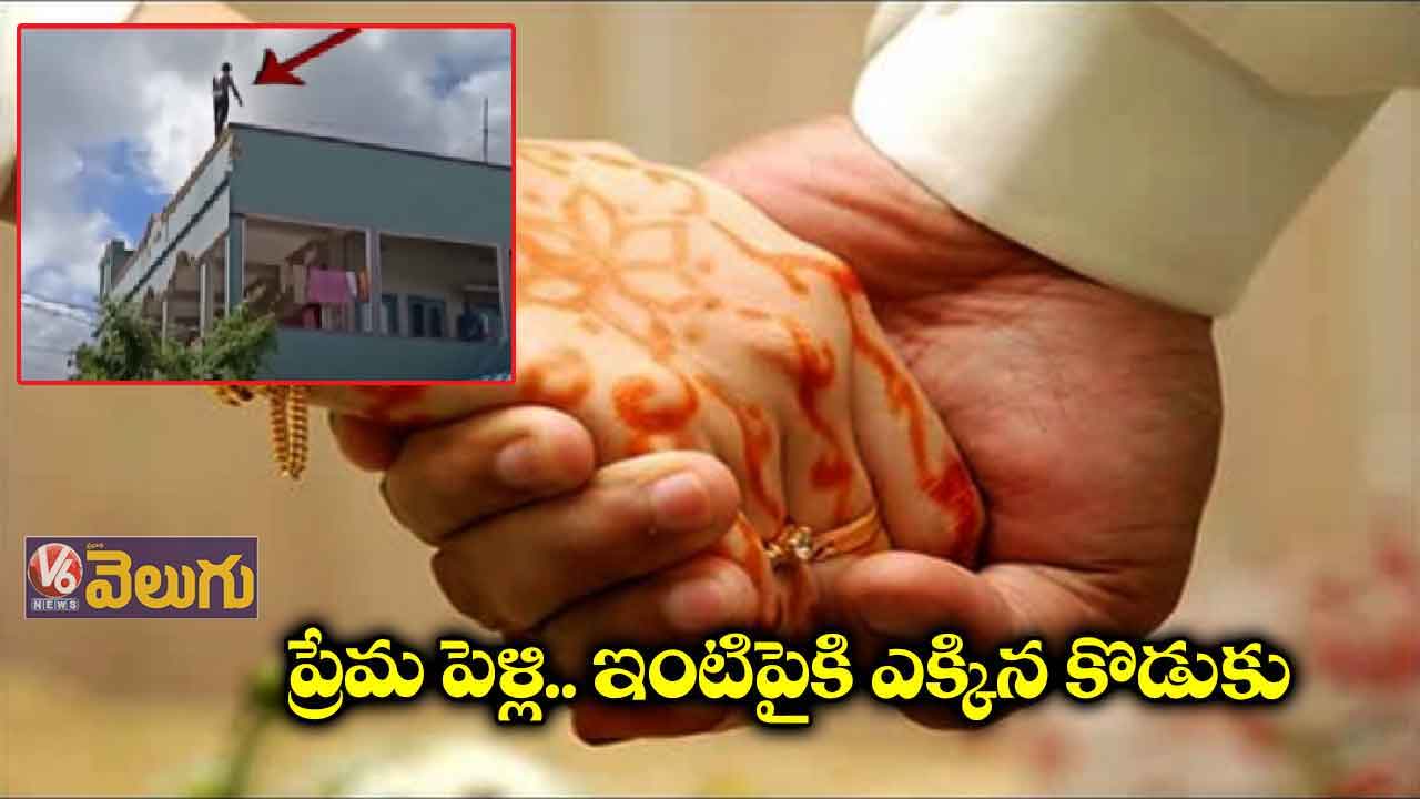 తల్లిదండ్రులు తనను ఇంట్లోకి రానివ్వాలంటూ.. ఇంటిపైకి ఎక్కి నిరసనకు దిగాడు. ఒంటిపై కిరోసిన్ పోసుకుని సూసైడ్ చేసుకుంటానంటూ హల్చల్ చేశాడు. గాంధీనగర్ కు చెందిన రామకృష్ట అనే యువకుడు ఇటీవలే ఓ అమ్మాయిని ప్రేమించి పెళ్లి చేసుకున్నాడు. అయితే తమ అంగీకారం లేకుండా పెళ్లి చేసుకున్నాడని.. తల్లిదండ్రులు అతడిని ఇంట్లోకి రానివ్వడం లేదు. దీంతో తనను ఇంట్లోకి రానివ్వాలని.. లేకపోతే ఆత్మహత్య చేసుకుంటానని రామకృష్ణ బెదిరింపులకు దిగాడు. చివరకు ఇరుగుపొరుగు వారు వచ్చి యువకుడికి నచ్చజెప్పి కిందకు తీసుకొచ్చారు.