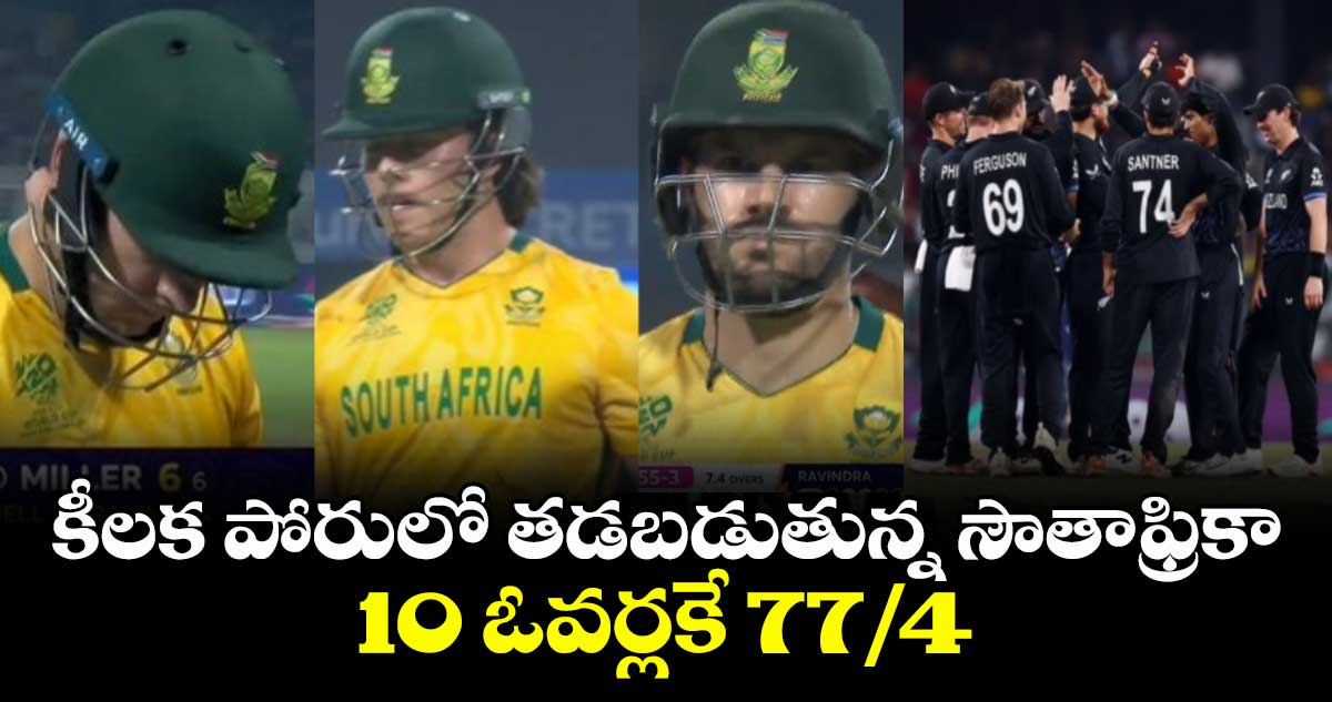 అయితే లాకీ ఫెర్గూసన్ వేసిన అద్భుతమైన ఓవర్లో ప్రోటీస్ కెప్టెన్ మార్క్రమ్ అవుట్ అయ్యే ప్రమాదం నుంచి తప్పించుకున్నాడు. మార్క్రామ్ ఇచ్చిన క్యాచ్ ని మిడ్ వికెట్ దగ్గర ఫీల్డింగ్ చేస్తున్న రచిన్ రవీంద్ర వదిలేశాడు. దీంతో ఆ తర్వాత బంతినే ఐడెన్ బౌండరీగా మలిచాడు. ఈ ఓవర్లో 7 పరుగులు వచ్చాయి. కాగా 8 ఓవర్ లో బౌలింగ్ కి వచ్చిన రచిన్ వేసిన బంతికి భారీ షాట్ ఆడేందుకు యత్నించిన మార్క్రామ్ లాంగాన్ లో ఉన్న డారిల్ మిచెల్ అద్భుతమైన క్యాచ్ ని ఒడిసి పట్టుకున్నాడు. ఈ క్యాచ్ ని కాసేపు పరిశీలించిన థర్డ్ అంపైర్ తర్వాత ఔట్ గా ప్రకటించాడు. అనంతరం క్రీజులోకి డేవిడ్ మిల్లర్ ఎక్కువ సేపు మైదానంలో నిలవలేకపోయాడు.