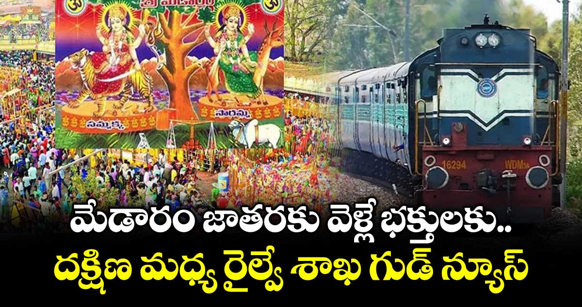 హైదరాబాద్: మేడారం మహా జాతరకు వెళ్లే భక్తులకు దక్షిణ మధ్య రైల్వే శాఖ గుడ్ న్యూస్ చెప్పింది. ఆసియా ఖండంలోనే అతిపెద్ద ఆదివాసి గిరిజన జాతరగా పేరొందిన మేడారం మహా జాతరకు ప్రత్యేక రైళ్లను నడపనున్నట్లు ప్రకటించింది. ఈనెల 28, 29వ తేదీల్లో మొత్తం 28 స్పెషల్ ట్రైన్స్ నడపనున్నట్లు సౌత్ సెంట్రల్ రైల్వే అధికారులు తెలిపారు.