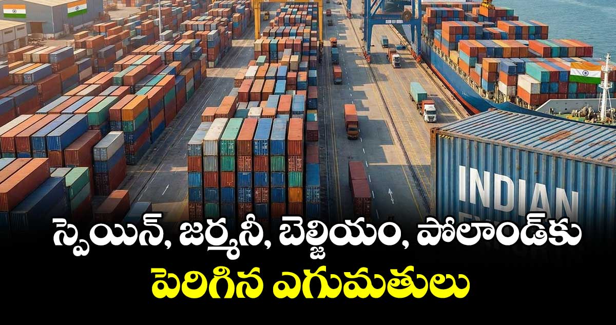 స్పెయిన్కు భారత ఎగుమతులు ఏప్రిల్–నవంబర్ 2025లో 56శాతం పెరిగి 4.7 బిలియన్ డాలర్లకు చేరాయి. గతేడాది ఇదే టైమ్లో జరిగిన 3 బిలియన్ డాలర్లతో పోలిస్తే పెరిగాయి. మొత్తం ఎగుమతుల్లో ఈ దేశ వాటా 2.4 శాతానికి చేరుకుంది. జర్మనీకి ఎగుమతులు 9.3శాతం పెరిగి 7.5 బిలియన్ డాలర్లకు చేరగా, బెల్జియంకి ఎగుమతులు 4.2 బిలియన్ డాలర్ల నుంచి 4.4 బిలియన్ డాలర్లకి చేరాయి. పోలాండ్కు ఎగుమతులు 7.6శాతం పెరిగి 1.82 బిలియన్ డాలర్లుగా ఉన్నాయి. ఈయూతో ఇండియా బైలేటరల్ ట్రేడ్ విలువ 2024–25లో 136 బిలియన్ డాలర్లుగా ఉంది.