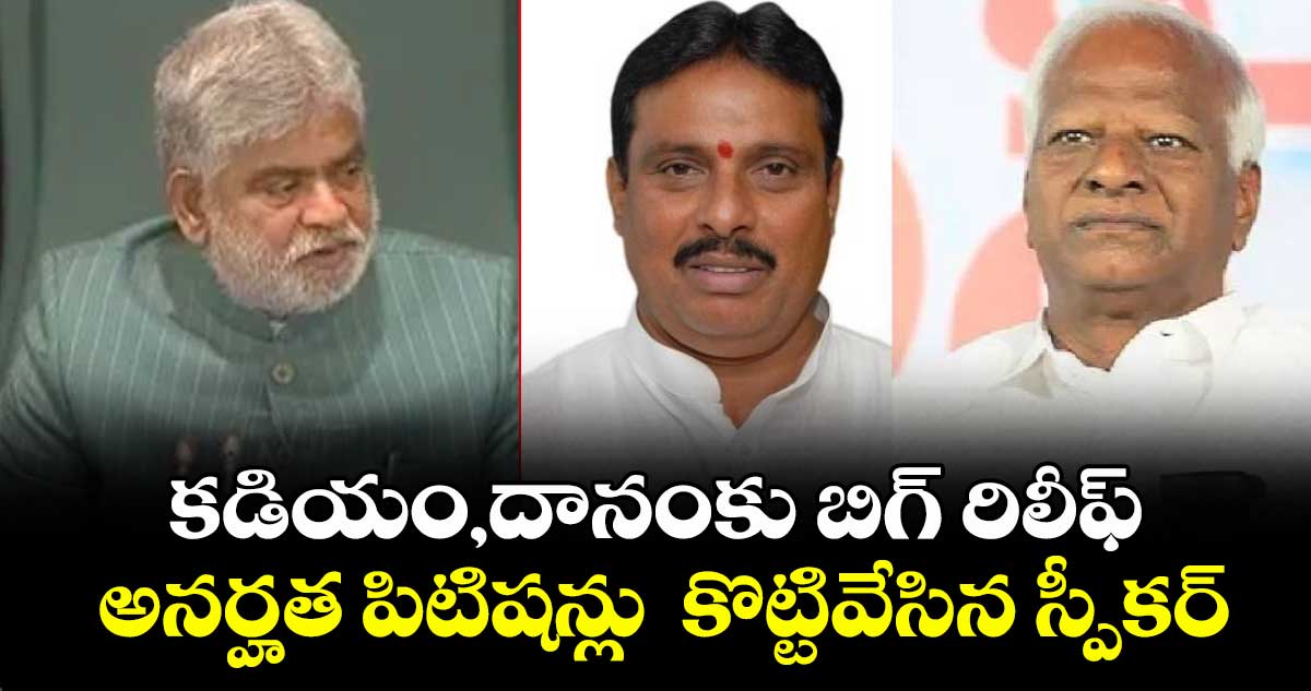 పార్టీ ఫిరాయింపు ఆరోపణలు ఎదుర్కొంటున్న ఎమ్మెల్యేలు దానం నాగేందర్, కడియం శ్రీహరికి ఊరట లభించింది. బీఆర్ఎస్ ఎమ్మెల్యేలు దాఖలు చేసిన అనర్హత పిటిషన్ లను డిస్మిస్ చేస్తూ స్పీకర్ గడ్డం ప్రసాద్ మార్చి 11న తుది తీర్పు ఇచ్చారు.
