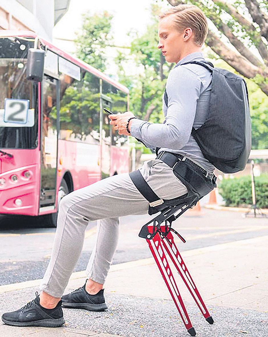 ఏదైనా కొత్త ప్రదేశానికి, ఊరికి వెళ్లినప్పుడు కూర్చోవడానికి సరైన వసతి దొరకదు. చైర్, బెం చీలు వంటివి అందుబాటులో ఉండవు. అలాంటి సందర్భాల్లో ‘లెక్స్’ సంస్థ రూపొందించిన వేరబుల్చైర్ ఎంతగానో ఉపయోగపడుతుంది. ఈ బయోనిక్ ఎక్సోస్కెలిటన్ చైర్ ను నడుముకు కట్టుకుని ఎక్కడికైనా తీసుకెళ్లొచ్చు. బ్యాగ్లాగే దీన్నీ మోసుకెళ్లొచ్చు. అవసరమైనప్పుడు ఓపెన్ చేసుకుని కూర్చోవచ్చు. కేజీకి కాస్త ఎక్కు వ బరువుండే ఇది 120 కేజీల వరకు మోయగలదు.