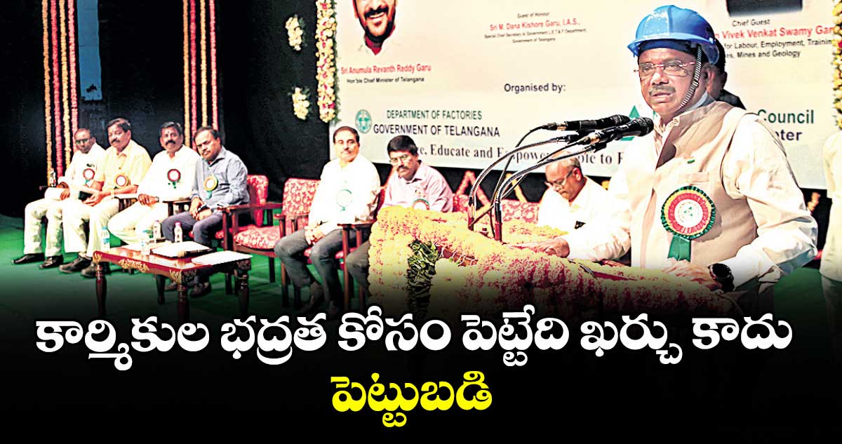 హైదరాబాద్, వెలుగు: కార్మికుల ప్రాణ రక్షణ కోసం చేసే వ్యయం వృథా ఖర్చు కాదని, అది పరిశ్రమల ప్రగతికి వేసే అత్యుత్తమ పెట్టుబడి అని రాష్ట్ర కార్మిక, ఉపాధి, గనుల శాఖ మంత్రి వివేక్ వెంకటస్వామి అన్నారు. రాష్ట్రంలోని అన్ని పరిశ్రమలు తప్పనిసరిగా ‘జీరో యాక్సిడెంట్’ లక్ష్యంతోనే ముందుకు సాగాలని యాజమాన్యాలకు సూచించారు.