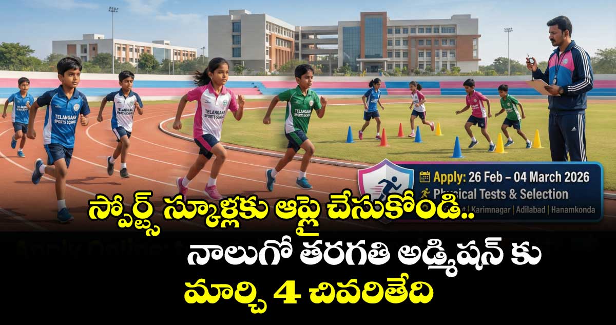 జనగామ అర్బన్, వెలుగు: 2026-27 విద్యా సంవత్సరానికి గాను స్పోర్ట్స్స్కూళ్లలో నాలుగో తరగతిలో ప్రవేశానికి మార్చి 4వ తేదీలోపు దరఖాస్తు చేసుకోవాలని డీవైఎస్వో కోదండరాములు గురువారం ఒక ప్రకటనలో పేర్కొన్నారు. మండల స్థాయిలో ఎంపికైన వారికి జిల్లా స్థాయిలో వచ్చే నెల 28న జనగామ జిల్లాలోని ధర్మకంచ మినీ స్టేడియంలో ఎంపిక పోటీలు ఉంటాయన్నారు.