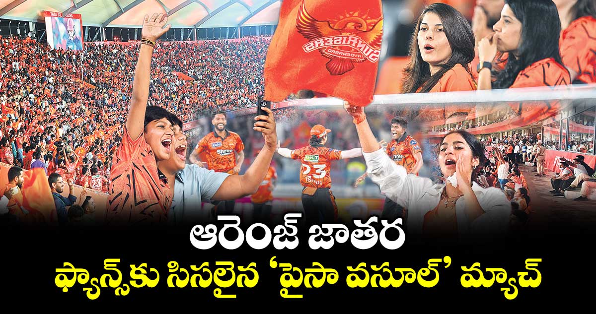 ఆరెంజ్ ఆర్మీ కేరింతలతో సోమవారం ఉప్పల్స్టేడియం దద్దరిల్లిపోయింది. హైదరాబాద్ వర్సెస్ రాజస్థాన్ మ్యాచ్ ఫ్యాన్స్ కు సిసలైన ‘పైసా వసూల్’ వినోదాన్ని పంచింది. తొలుత బ్యాటింగ్లో హైదరాబాద్ కెప్టెన్ ఇషాన్ కిషన్ 91 పరుగులతో ఆకాశమే హద్దుగా సిక్సర్లు బాదుతుంటే గ్యాలరీల్లో అభిమానులు గంతులేశారు. బౌలింగ్లో కొత్త సెన్సేషన్ ప్రఫుల్ హింజ్ తన తొలి ఓవర్లోనే మూడు వికెట్లు తీసి మ్యాజిక్ చేయడంతో స్టేడియం హోరెత్తిపోయింది. మొత్తానికి ఉప్పల్ గడ్డపై మనోళ్లు మళ్లీ పంజా విసరడంతో ఆరెంజ్ ఆర్మీ సంబరాలు అంబరాన్నంటాయి.