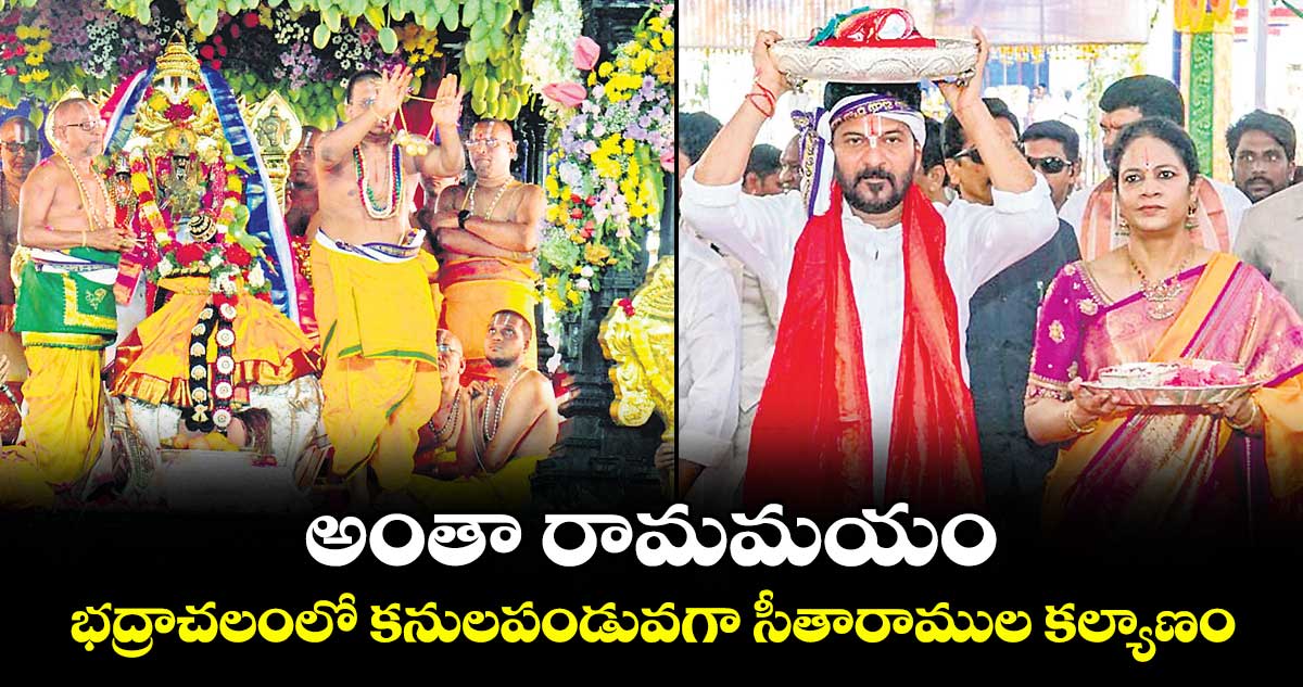 భద్రాచలం, వెలుగు:భద్రాచలంలో శ్రీసీతారాముల కల్యాణోత్సవం కనుల పండువగా జరిగింది. మిథిలా మండపంలో శ్రీరామ జయరామ జయజయ రామా అంటూ భక్త జనకోటి జయజయ ధ్వానాల మధ్య దశరథ కుమారుడు శ్రీరామచంద్రుడు, జనకుని కుమార్తె సీతమ్మ కల్యాణం వైభవోపేతంగా సాగింది. దశరథుడు, జనకుడితోపాటు భక్తజనం తరఫున భక్తరామదాసు చేయించిన మూడు సూత్రాలతో వేదపండితుల మంత్రోచ్ఛరణల మధ్య భక్తజన కోటి కనులారా వీక్షిస్తుండగా సీతమ్మవారికి శుక్రవారం మధ్యాహ్నం 12 గంటలకు అభిజిత్లగ్నం సమీపించగానే మాంగళ్యధారణ జరిగింది. కల్యాణ తంతును తిలకించేందుకు తరలివచ్చిన భక్తజనంతో భద్రాద్రి పులకించింది. రాష్ట్ర ప్రభుత్వం తరఫున సీఎం రేవంత్రెడ్డి దంపతులు స్వామివారి కల్యాణానికి పట్టువస్త్రాలు, ముత్యాల తలంబ్రాలు సమర్పించారు.