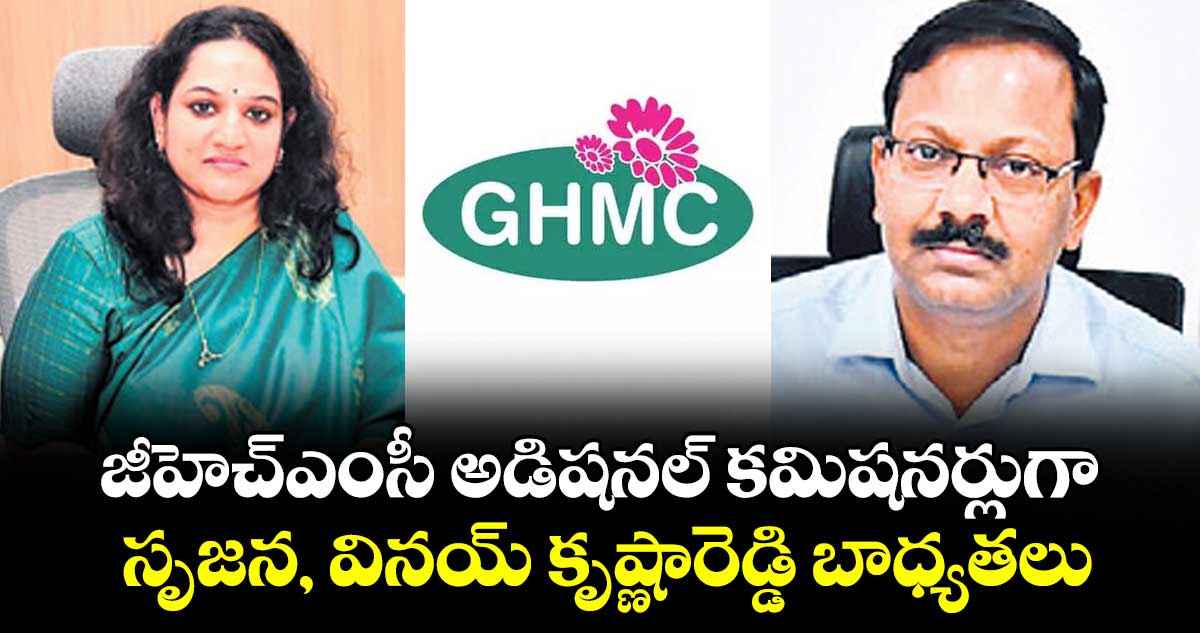 హైదరాబాద్ సిటీ, వెలుగు: జీహెచ్ఎంసీ అడిషనల్ కమిషనర్లుగా ఇద్దరు ఐఏఎస్ అధికారులు జి.సృజన, వినయ్ కృష్ణారెడ్డి బుధవారం బాధ్యతలు స్వీకరించారు. జీహెచ్ఎంసీ హెడ్ ఆఫీస్లో వీరు చార్జ్ తీసుకున్నారు. వినయ్ కృష్ణారెడ్డి మల్కాజ్గిరి, ఎల్బీ నగర్, ఉప్పల్ జోన్లను మానిటరింగ్ చేయనున్నారు.