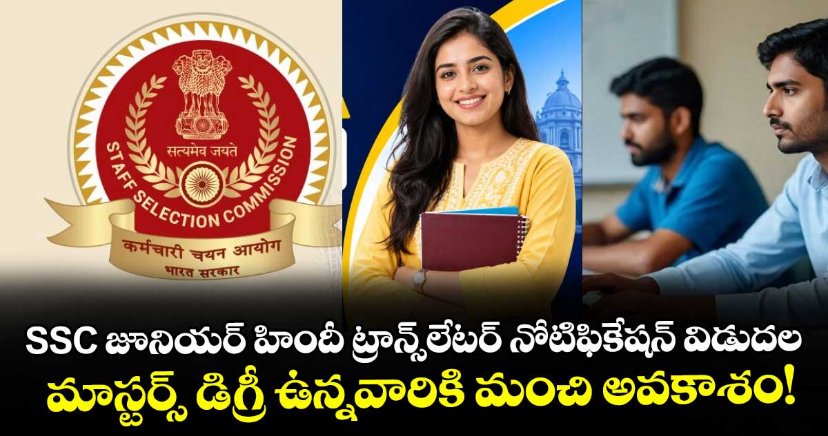 స్టాఫ్ సెలెక్షన్ కమిషన్ (SSC) జూనియర్ హిందీ ట్రాన్స్లేటర్ పోస్టుల భర్తీకి నోటిఫికేషన్ విడుదల చేసింది. ఆసక్తి, అర్హత కలిగిన అభ్యర్థులు ఆన్లైన్ ద్వారా అప్లై చేయవచ్చు. అప్లికేషన్ స్వీకరణ ప్రక్రియ ఏప్రిల్ 23న ప్రారంభమై మే 14న ముగుస్తుంది.